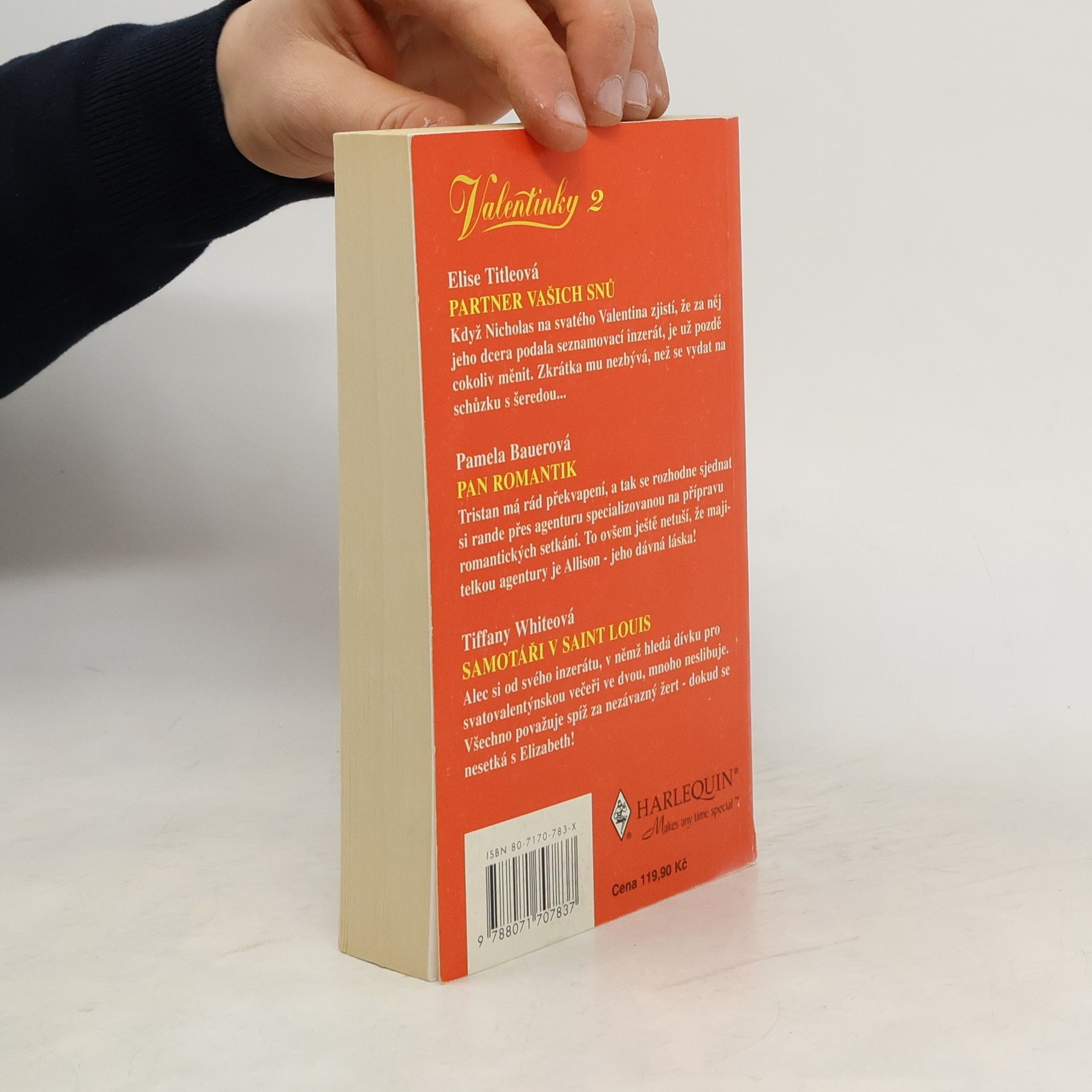 Partner vašich snů - Elise Title Když Nicholas na svatého Valentina zjistí, že za něj jeho dcera podala seznamovací inzerát, je už pozdě cokoliv měnit. Zkrátka mu nezbývá, než se vydat na schůzku s šeredou ... Pan romantik - Pamela Bauer Tristan má rád překvapení a tak se rozhodne sjednat si rande přes agenturu specializovanou na přípravu romantických setkání. To ovšem ještě netuší, že majitelkou agentury je Allison - jeho dávná láska! Samotáři v Saint Louis - Tiffany White Alec si od svého inzerátu, v němž hledá dívku pro svatovalentýnskou večeři ve dvou, mnoho neslibuje. Všechno považuje spíš za nezávazný žert - dokud se nesetká s Elizabeth!