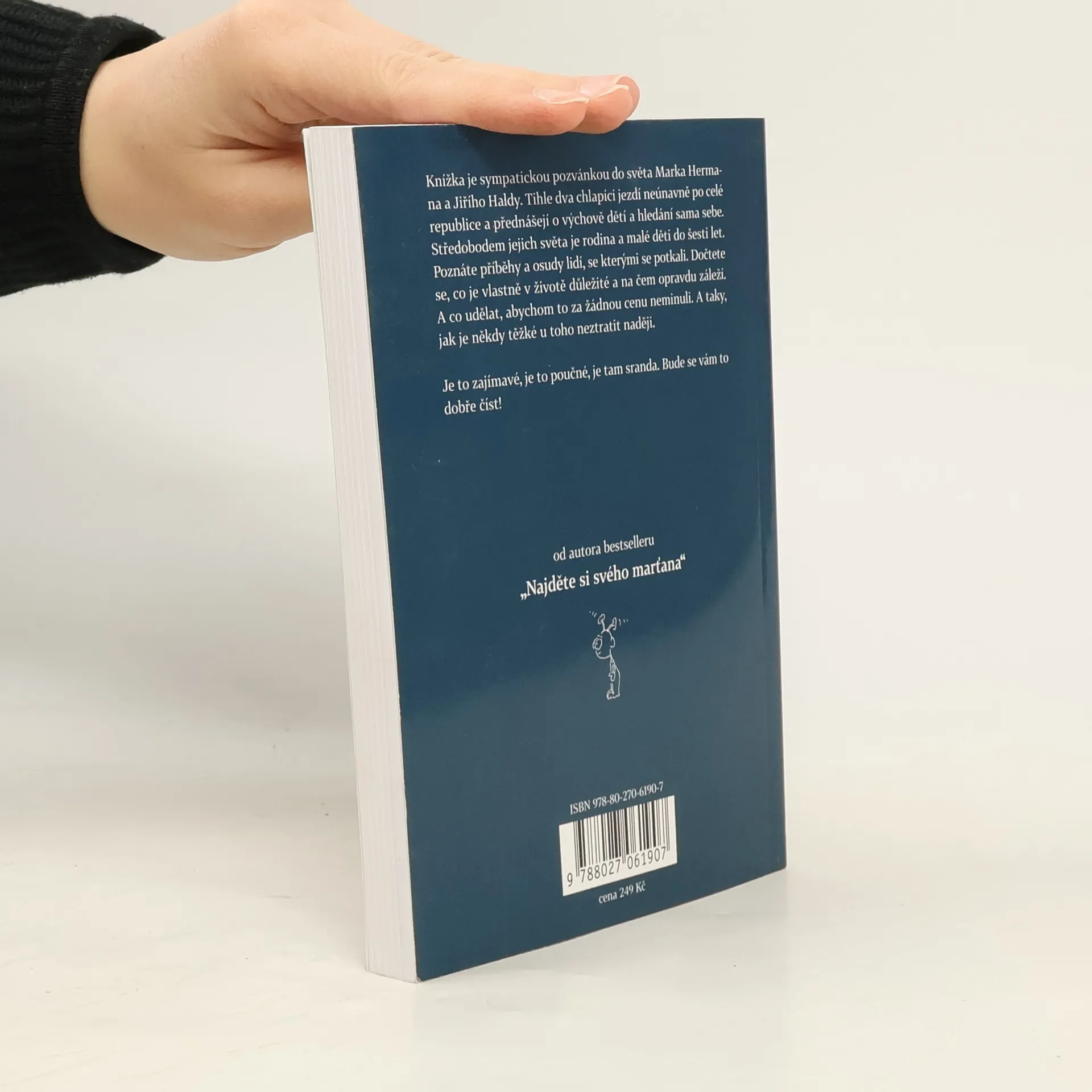 Novinka od autora bestselleru „Najděte si svého marťana“. Knížka je sympatickou pozvánkou do světa Marka Hermana a Jiřího Haldy. Tihle dva chlapíci jezdí neúnavně po celé republice a přednášejí o výchově dětí a hledání sama sebe. Středobodem jejich světa je rodina a malé děti do šesti let. Poznáte příběhy a osudy lidí, se kterými se potkali. Dočtete se, co je vlastně v životě důležité a na čem opravdu záleží. A co udělat, abychom to za žádnou cenu neminuli. A taky, jak je někdy těžké u toho neztratit naději. Je to zajímavé, je to poučné, je tam sranda. Bude se vám to dobře číst! ...někdy může být život těžký, ale nikdy to nevzdávejte...