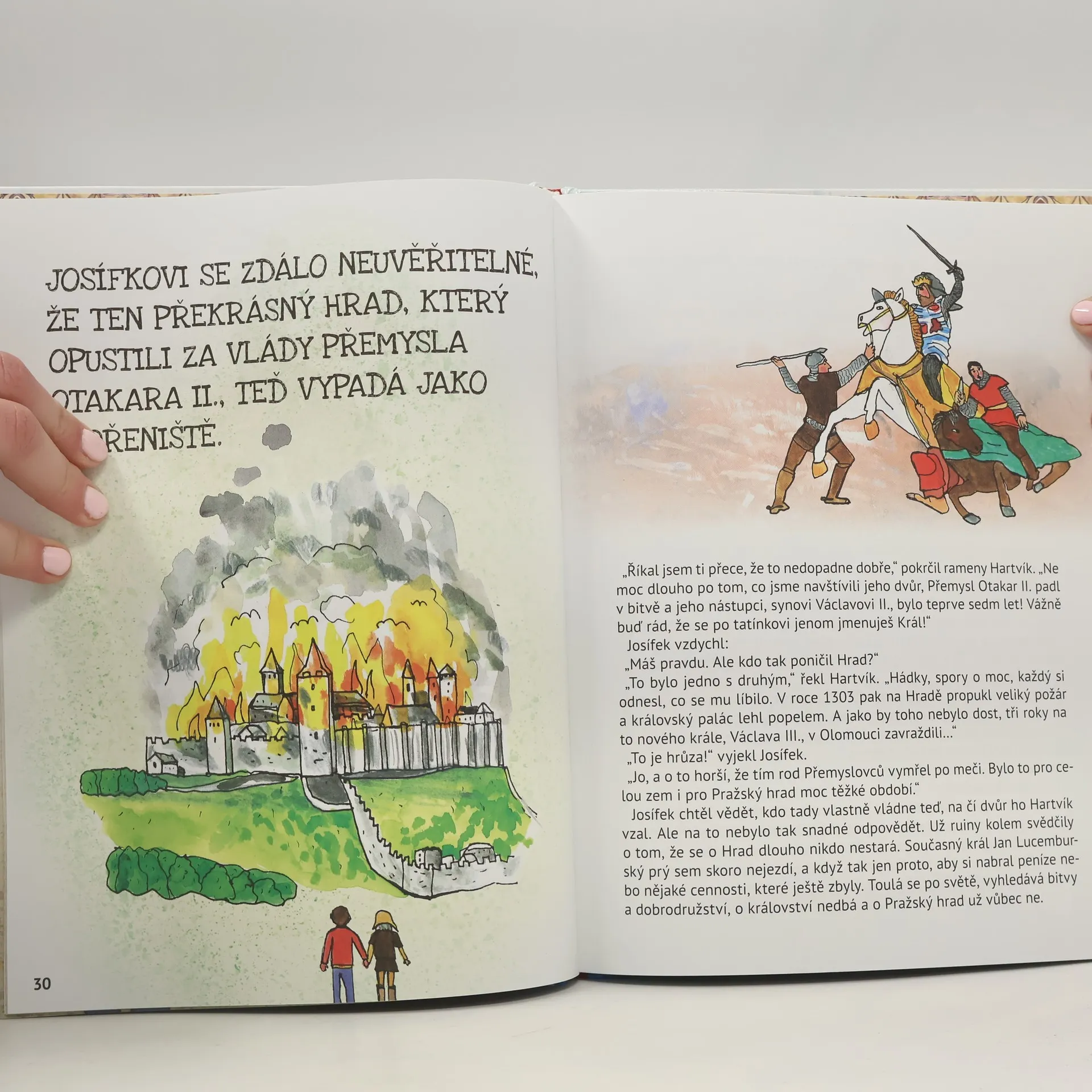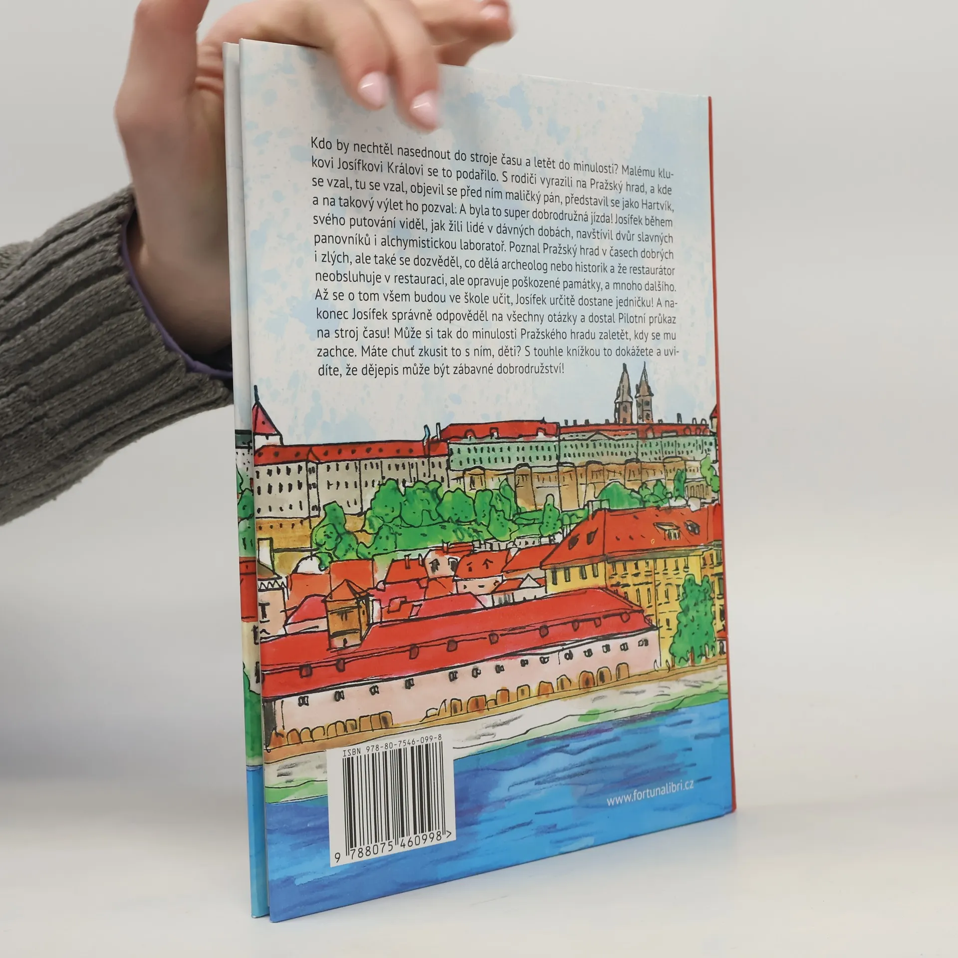 Kdo by nechtěl nasednout do stroje času a letět do minulosti? Malému klukovi Josífkovi Královi se to podařilo. S rodiči vyrazili na Pražský hrad, a kde se vzal, tu se vzal, objevil se před ním maličký pán, představil se jako Hartvík, a na takový výlet ho pozval. A byla to super dobrodružná jízda! Josífek během svého putování viděl, jak žili lidé v dávných dobách, navštívil dvůr slavných panovníků i alchymistickou laboratoř. Také se dověděl, co dělá archeolog nebo historik a že restaurátor neobsluhuje v restauraci, ale opravuje poškozené památky, a mnoho dalšího. Až se o tom budou ve škole učit, Josífek určitě dostane jedničku! A nakonec Josífek správně odpověděl na všechny otázky a dostal Pilotní průkaz na stroj času! Může si tak do minulosti Pražského hradu zaletět, kdy se mu zachce. Máte chuť zkusit to s ním, děti? S touhle knížkou to dokážete a uvidíte, že dějepis může být zábavné dobrodružství!