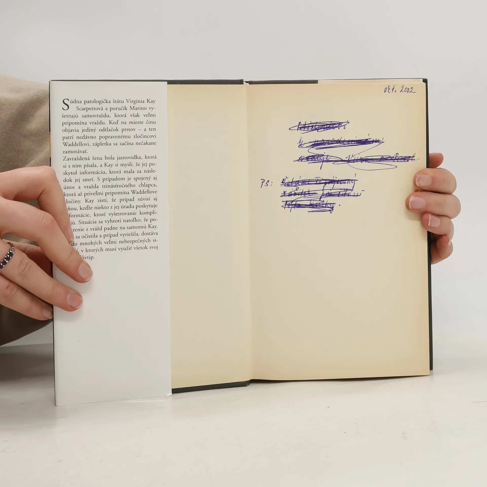 Ďalší zo série detektívnych príbehov so súdnou patologičkou Kay Scarpettovou. Spolu s poručíkom Peteom Marinom vyšetrujú podozrivú samovraždu. Keď na mieste činu nájdu otlačky prstov nedávno popraveného zločinca, zápletka sa začne ešte väčšmi zamotávať...