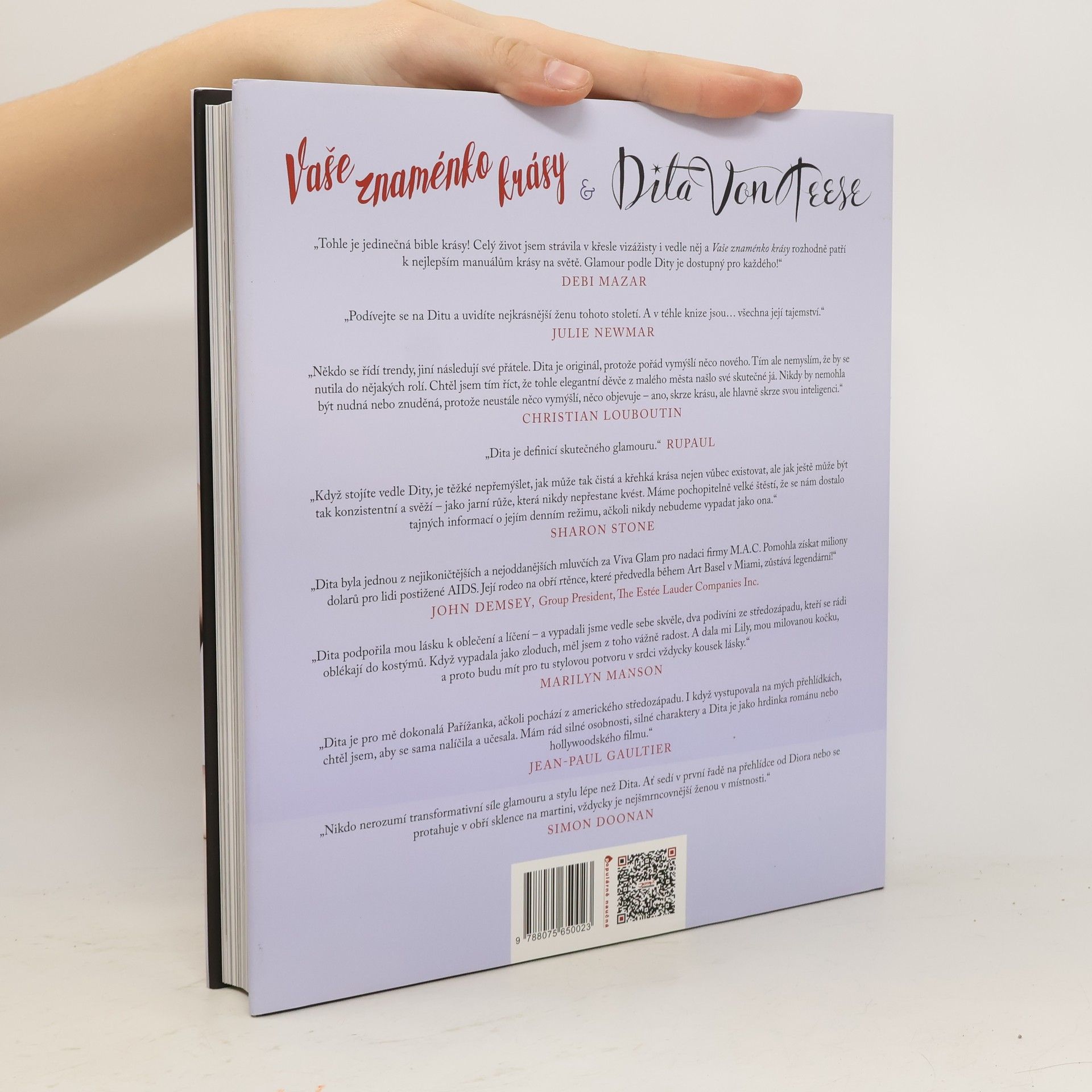 Dita von Teese - femme fatale, módní ikona a glamour girl. Jedna z nejstylovějších žen tohoto století. V této knize jsou… všechna její tajemství. Jak se z obyčejné dívky stane burleskní tanečnice a poté módní ikona, která se objevila na tisících fotografií, v prestižních magazínech i na přehlídkách slavných návrhářů? Vlastně jednoduše: musíte brát krásu jako umělecký obor. Dita Von Teese už jako malá obdivovala filmové hvězdy starého Hollywoodu, které ji později inspirovaly k vytvoření vlastního jedinečného stylu. Ať už zrovna ve třpytivém prádélku předvádí divákům své slavné číslo v obří sklence na martini nebo okouzluje na galavečeru v originální hedvábné róbě, vypadá vždycky dokonale. A co je nejzajímavější? Za její krásou nestojí tým stylistů a vizážistů – o ty perfektní rudé rty, svůdné oční linky, dramatické oblouky obočí a lesklé lokny se Dita stará zásadně sama! V knize Vaše znaménko krásy vás Dita a její dobrá přítelkyně a spoluatorka Rose Apodaca provedou každým krokem Ditina režimu i rituálů krásy. Dozvíte se, jak se Dita stravuje, jak cvičí, aby si udržela štíhlou postavu, jak pečuje o svou pleť a vlasy a jak vytváří své dokonalé stylové líčení.
