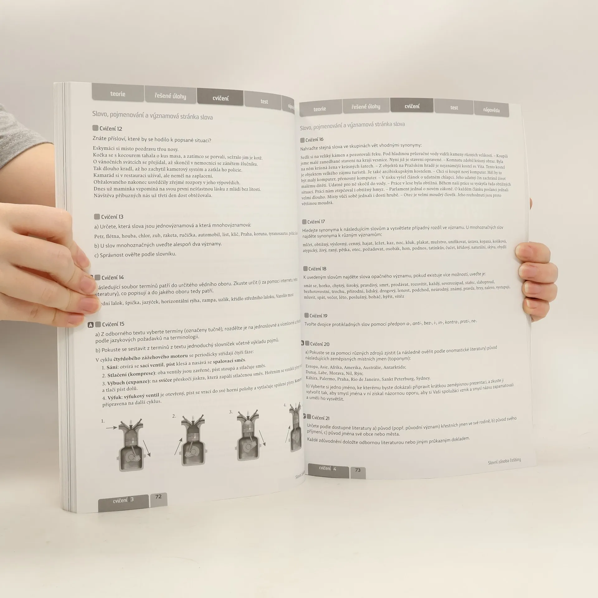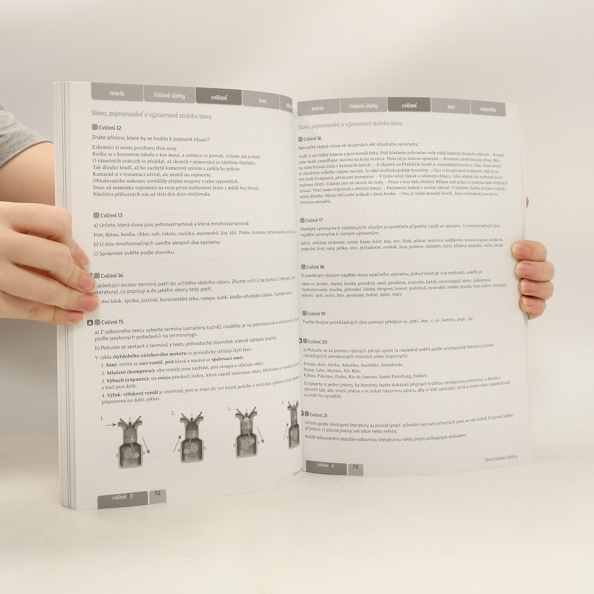 Jednosvazková publikace zahrnuje učivo probírané během celého středoškolského studia - pokrývá jazykovou část předmětu i část komunikace a sloh, koncepčně rozdělené do jednotlivých tematicky uspořádaných celků (Obecné poznatky o jazyce, Český jazyk v mluvené a psané podobě, Slovní zásoba češtiny, Tvarosloví českého jazyka, Skladba českého jazyka, Tvorba a analýza textu, Český jazyk v současné společnosti). Ty se dále dělí na kapitoly s jednotnou strukturou: teorie, řešené úlohy a cvičení. Jednotlivé kapitoly v tematických celcích jsou uvozeny motivační stranou, obsahující zajímavá jazyková i mimojazyková fakta, a oddíl Naučíš se, který pojmenovává cíle dané kapitoly. První část, teorie, uvádí moderně koncipovaný výklad. Vyznačeny jsou definice či shrnutí určená k zapamatování, obsahuje také blok Souvislosti, zahrnující zajímavosti a přesahy do jiných všeobecných nebo odborných předmětů či do reálného života. Samostatnou částí jsou řešené úlohy. Obsahují základní i náročnější úlohy k