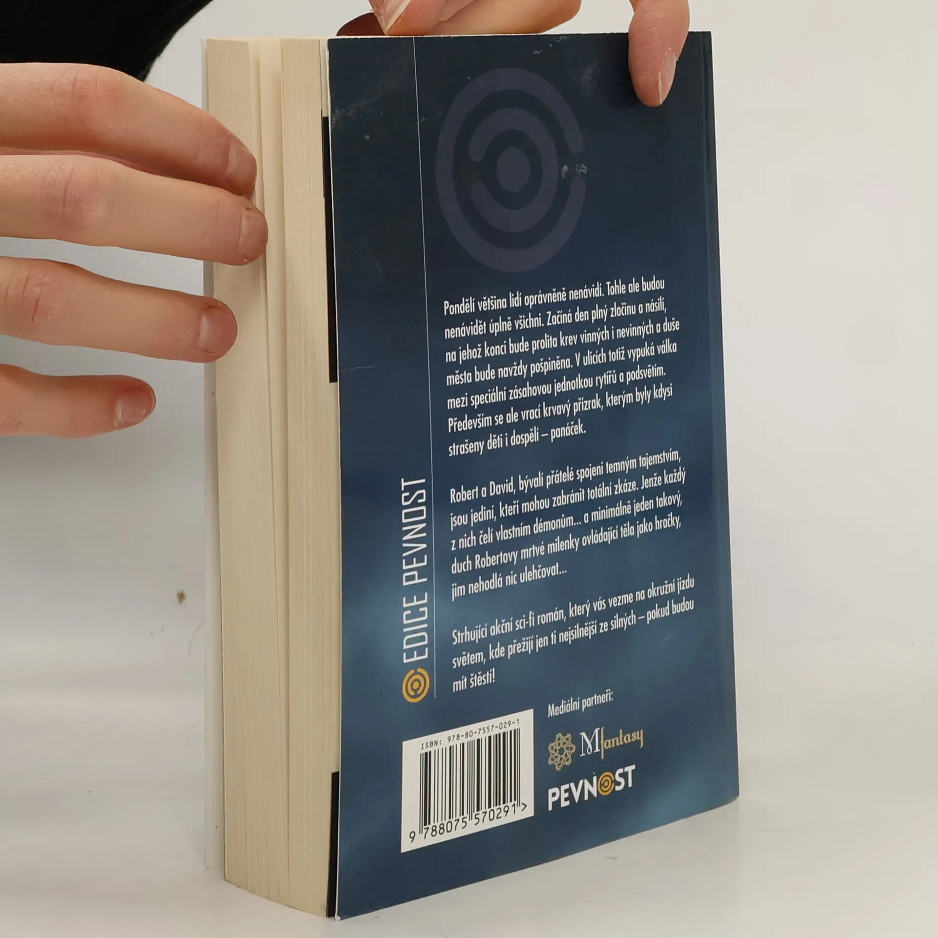 Pondělí většina lidí oprávněně nenávidí. Tohle ale budou nenávidět úplně všichni. Začíná den plný zločinu a násilí, na jehož konci bude prolita krev vinných i nevinných a duše města bude navždy pošpiněna. V ulicích totiž vypuká válka mezi speciální zásahovou jednotkou rytířů a podsvětím. Především se ale vrací krvavý přízrak, kterým byly kdysi strašeny děti i dospělí – panáček. Robert a David, bývalí přátelé spojeni temným tajemstvím, jsou jediní, kteří mohou zabránit totální zkáze. Jenže každý z nich čelí vlastním démonům… a minimálně jeden takový, duch Robertovy mrtvé milenky ovládající těla jako hračky, jim nehodlá nic ulehčovat… Strhující akční sci-fi román, který vás vezme na okružní jízdu světem, kde přežijí jen ti nejsilnější ze silných – pokud budou mít štěstí!