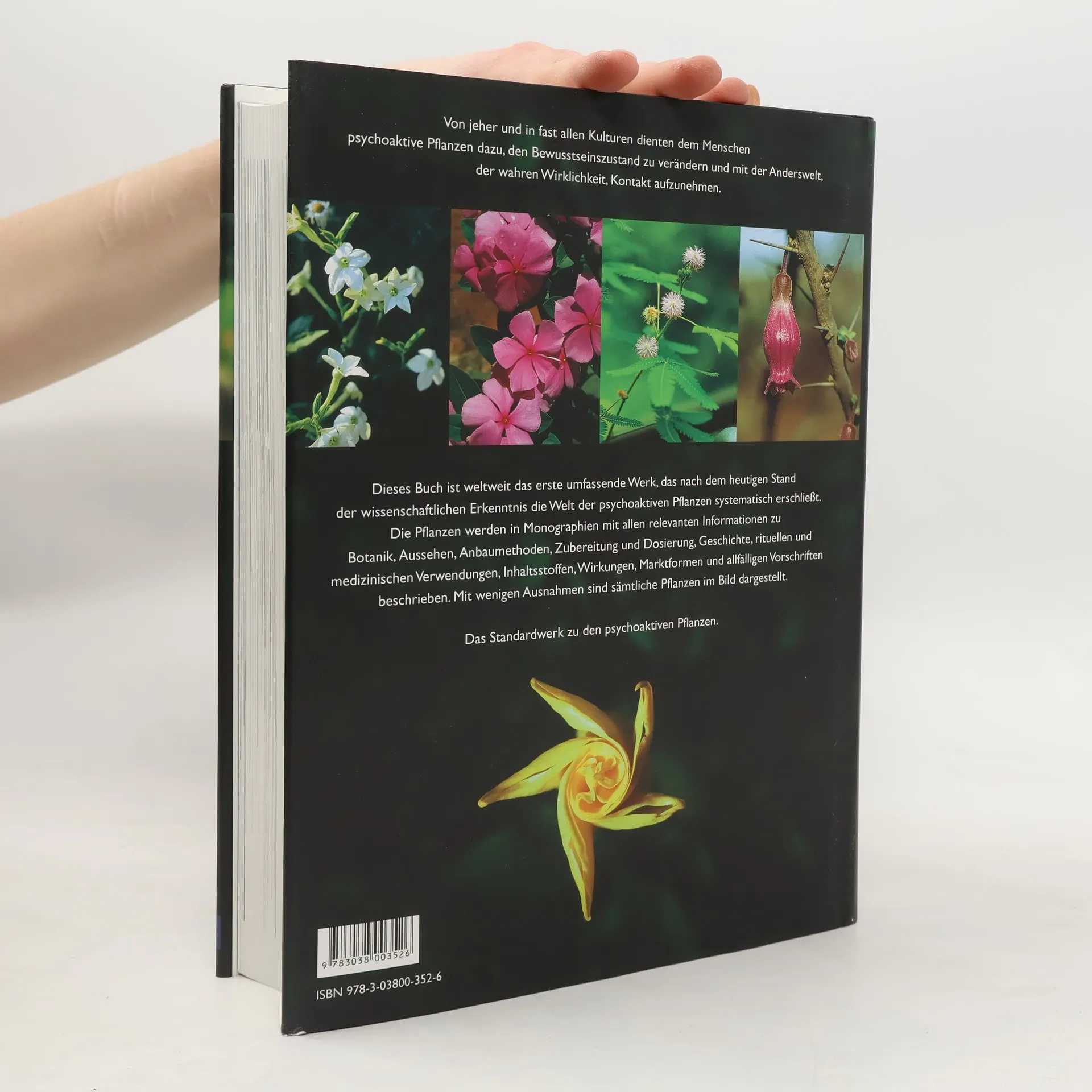 Fast jeder Mensch in fast jeder Kultur nimmt täglich eine oder mehrere psychoaktive Pflanzen zu sich. Egal ob es sich um einen Amazonasindianer oder um einen Mitteleuropäer handelt. Gerade in der westlichen Welt ist der Gebrauch psychoaktiver Pflanzenprodukte sehr weit verbreitet. Aber wer denkt beim morgendlichen Kaffee, bei der ersten Zigarette, beim nachmittäglichen Wein oder beim Bier zum Fernsehen daran, daß diese Produkte aus psychoaktiven Pflanzen bestehen? Dieses Buch ist ein wichtiges Werk, das nach dem heutigen Stand der wissenschaftlichen Erkenntnis die Welt der psychoaktiven Pflanzen systematisch erschließt. Alle wichtigen Pflanzen werden in Monographien dargestellt. Dabei werden alle relevanten Informationen zu Botanik, Geschichte, Aussehen, Anbaumethoden, Zubereitungsformen, Dosierungen, rituellen und medizinischen Verwendungen, Inhaltsstoffen, Wirkungen, Marktformen und Vorschriften gegeben. Was sind psychoaktive Pflanzen Der Gebrauch psychoaktiver Pflanzen Die Erforschung psychoaktiver Pflanzen Die Angst vor psychoaktiven Pflanzen Psychoaktive Pflanzen als kulturschaffende Faktoren Alle Gattungen und Arten von A-Z Wenig erforschte psychoaktive Pflanzen Angeblich psychoaktive Pflanzen Psychoaktive Pilze Kombinationspräparate Pflanzenwirkstoffe und Neurotransmitter