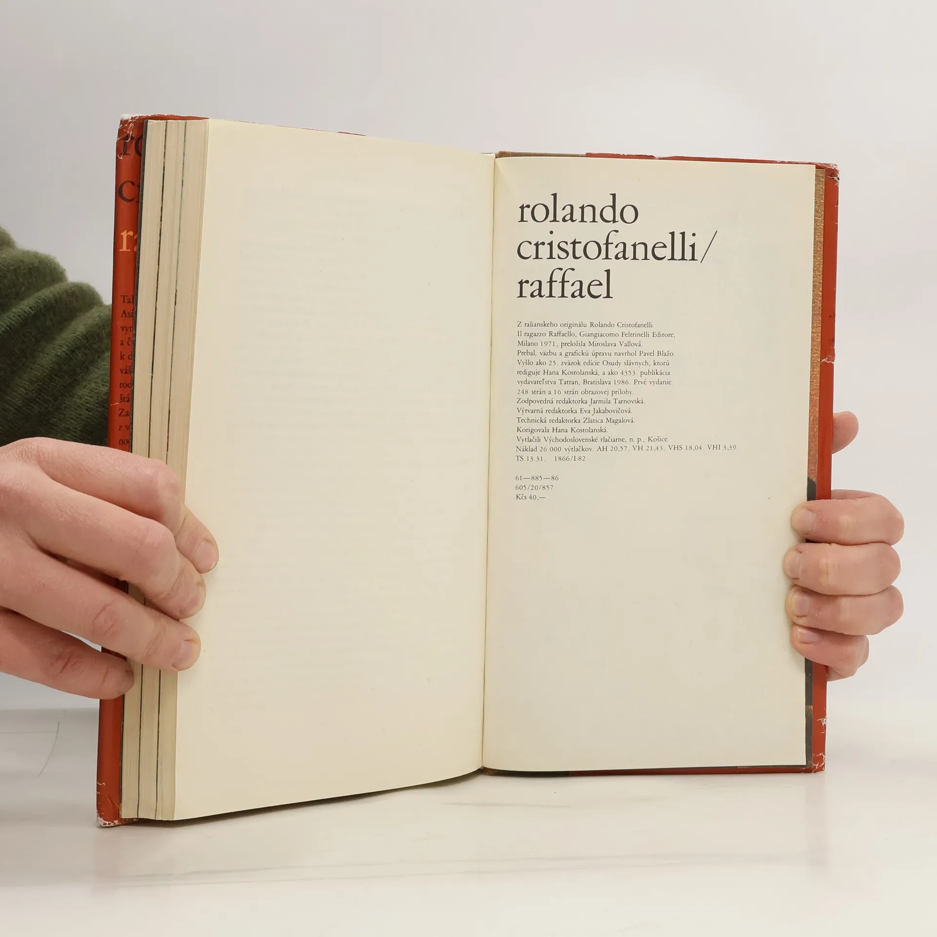 Rolando Cristofanelli, spisovateľ a historik umenia nemal ľahkú úlohu, pretože zo života Raffaela Santiho sa zachovalo málo autentických správ. Pokúsil sa preniknúť k Raffaelovej osobnosti znútra, zrekonštruovať jeho názory na svet, na ľudí a na umenie. Fiktívny denník, ktorý si umelec začína písať ešte v detstve, zavedie nás najprv do Perugie, kde sa mladík zaúča do tajov maliarskeho remesla. Nasleduje Florencia, kde sa Raffael márne pokúša uplatniť. A napokon Rím, kde sa konečne dočká vytúženej slávy, bohatstva a uznania.