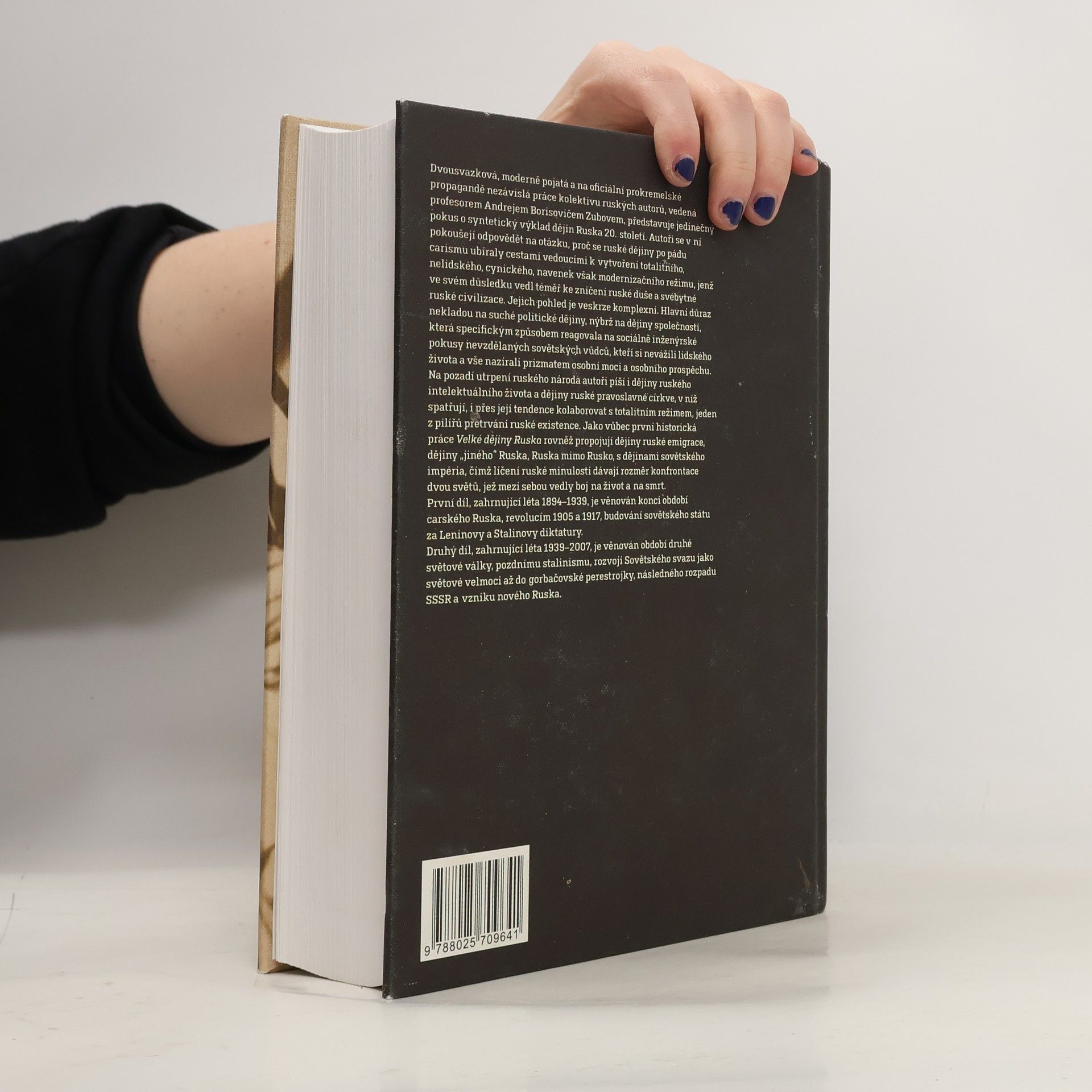 Dvousvazková práce ruských autorů, vedená profesorem Andrejem Borisovičem Zubovem, nabízí unikátní syntetický výklad dějin Ruska 20. století. Autoři se zaměřují na to, proč se ruské dějiny po pádu carismu vydaly cestou k totalitnímu režimu, který, ač se prezentoval jako modernizační, vedl k devastaci ruské duše a civilizace. Jejich analýza je komplexní, přičemž klade důraz na dějiny společnosti spíše než na politické události. Zkoumají reakce ruské společnosti na sociálně inženýrské pokusy nevzdělaných sovětských vůdců, kteří si nevážili lidského života a usilovali o osobní moc. V kontextu utrpení národa se věnují také ruskému intelektuálnímu životu a pravoslavné církvi, kterou považují za jeden z pilířů přežití ruské existence, i když kolaborovala s totalitním režimem. První díl, pokrývající léta 1894-1939, se soustředí na konec carského Ruska, revoluce 1905 a 1917 a budování sovětského státu za Leninovy a Stalinovy diktatury. Tato historická práce rovněž propojuje dějiny ruské emigrace s dějinami sovětského impéria, čímž ukazuje konfrontaci dvou světů.