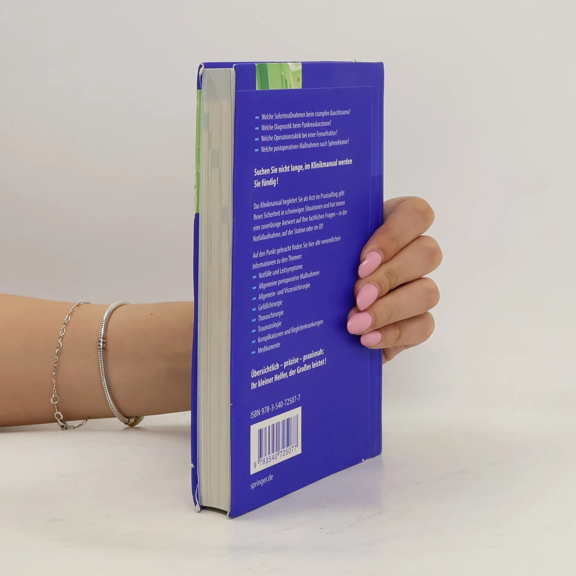 Manchmal muss es schnell Keine Zeit, lange zu blattern, Sie brauchen die gewunschte Information schnell, prazise und zuverlassig. Das Klinikmanual Chirurgie bietet das notwendige Wissen zu Notfallen, Leitsymptomen, zur Allgemein-, Viszeral-, Thorax- und Gefasschirurgie sowie zur Traumatologie und zu Medikamenten. Das lesefreundliche Layout und die konsequente Gliederung in Anamnese und Klinik, Diagnostik, Differentialdiagnosen, Sofortmassnahmen, OP-Vorbereitung und postoperative Massnahmen erleichtern den schnellen Zugriff auf die Informationen."