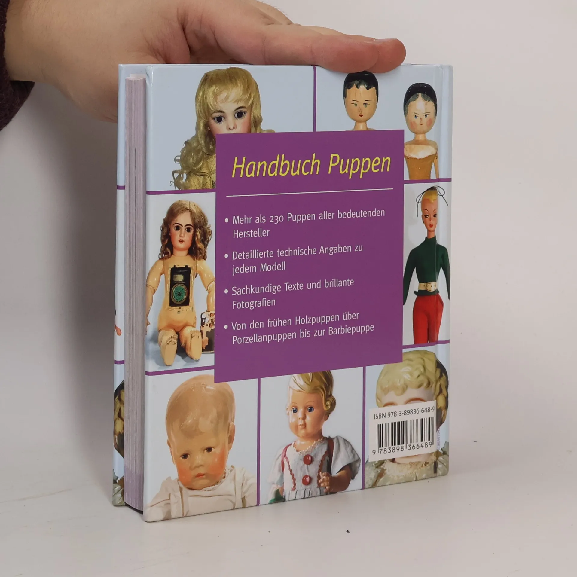 Puppen - das beliebteste und älteste Spielzeug der Welt fasziniert Klein und Groß. Dieses Handbuch mit mehr als 230 Fotografien gibt einen Überblick über die schönsten und kostbarsten Puppen. Von den frühen Holzpuppen über deutsche und französische Porzellanpuppen bis zur Barbie werden alle wichtigen Puppen von 1800 bis heute vorgestellt. Informative Texte zu den unterschiedlichen Werkstoffen, den wichtigsten Herstellern und die verschiedenen Puppentypen geben einen Einblick in die Puppengeschichte.