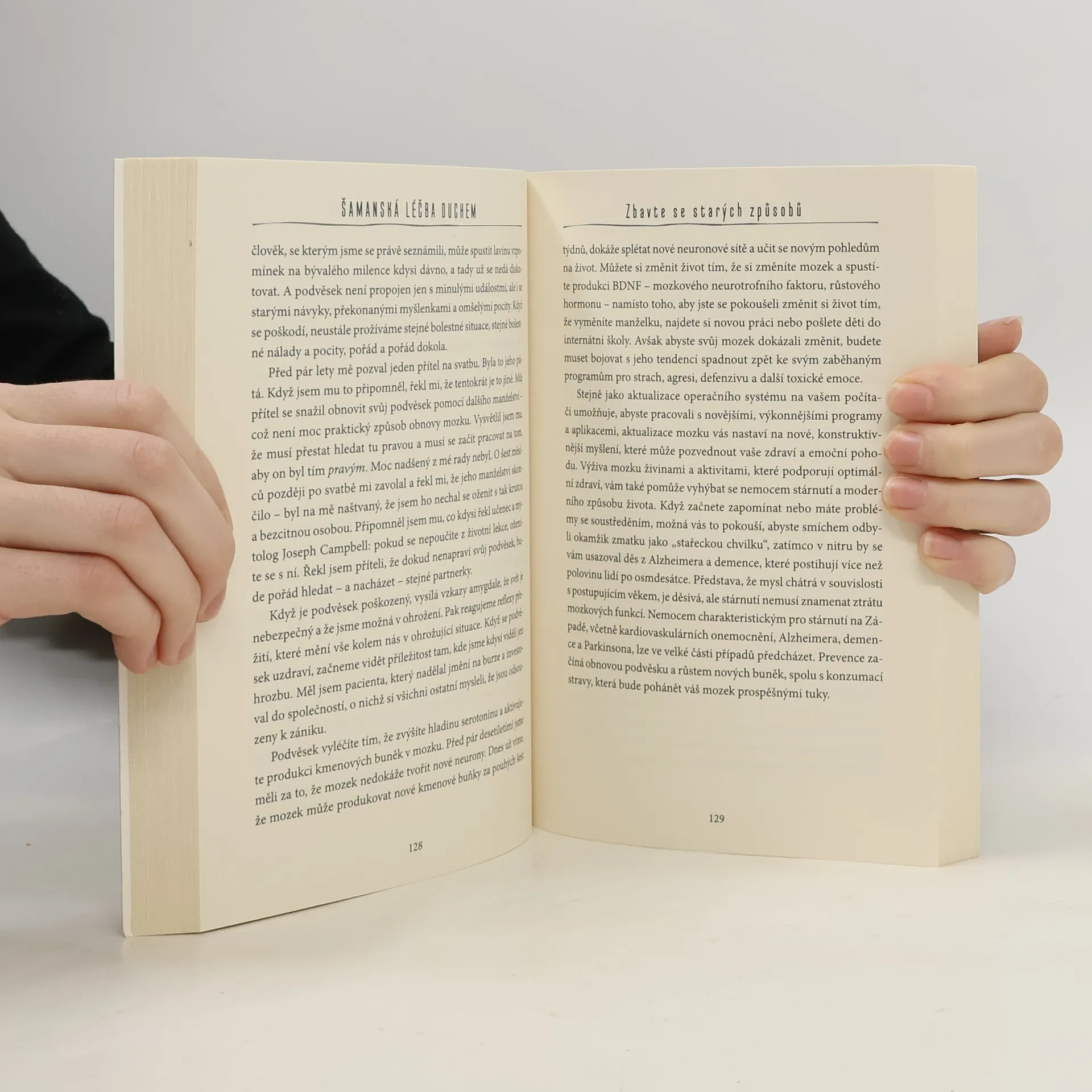 MEDICÍNA JEDNOHO DUCHA: PRADÁVNÉ CESTY KE ZDRAVÍ A DUŠEVNÍ POHODĚ Na Západě jsme zvyklí obracet se na lékaře a odborníky, aby nás vedli při našem léčení, růstu a učení. Naše školy, práce, náboženství a vláda jsou hierarchické. V Amazonii však nejsou žádné úrovně managementu mezi námi a Duchem. Šaman – moudrý stařec či stařena – je uznáván jako léčitel, ale není považován za nadřazeného ostatním členům společenství. Šaman je jednoduše vyškolený prostředník, který komunikuje s viditelným i neviditelným světem, aby nám pomohl obnovit rovnováhu těla, mysli a duše. Poselství této knihy nám sděluje, že nemusíme pátrat po žádném šamanovi, abychom mohli objevit Ducha, ani nemusíme hledat nikoho mimo sebe, abychom se uzdravili. Stačí se pouze dívat do svého nitra. Právě tam obdržíme Medicínu Jediného Ducha. Pokud máme odvahu, Medicína Jednoho Ducha nás přivede ke zcela odlišnému životu – životu plnému zdraví, nové moudrosti, nových aktivit, nových vztahů a nových příležitostí. Začneme se více cítit doma ve své vlastní kůži. Změny. které učiníme, budou trvalé a nic nám nezabrání následovat naše sny. page1image11880