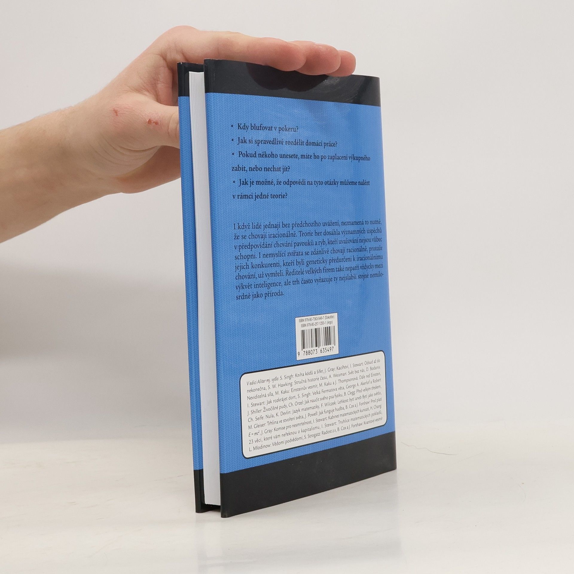 ... a jak může změnit váš život. Pokaždé, když se setkají dva lidé, hrají spolu nějakou hru – nebo aspoň pokaždé, když mají cíle, kterých chtějí dosáhnout, a strategie, které k tomu mohou využít. Hry tedy hrají úplně všichni – obchodníci s akciemi i řidiči v dopravní špičce, vězni na útěku i účastníci internetových aukcí, zamilované páry při romantických námluvách i politici při vyhlašování ultimát. Teorie her studuje otázky, které jsou všem těmto hrám společné, například jak budou postupovat racionální hráči či jak předvídat výsledek hry. Tato poutavě napsaná kniha umožní pochopit teorii her bez složitého matematického aparátu. Ukazuje, jak lze z několika jednoduchých předpokladů vybudovat značně složitou teorii, která – i když byla původně určena pro aplikace v ekonomii – stačila za svoji relativně krátkou dobu existence ovlivnit natolik rozdílné obory, jako je politologie a etika na jedné straně a evoluční biologie na straně druhé.