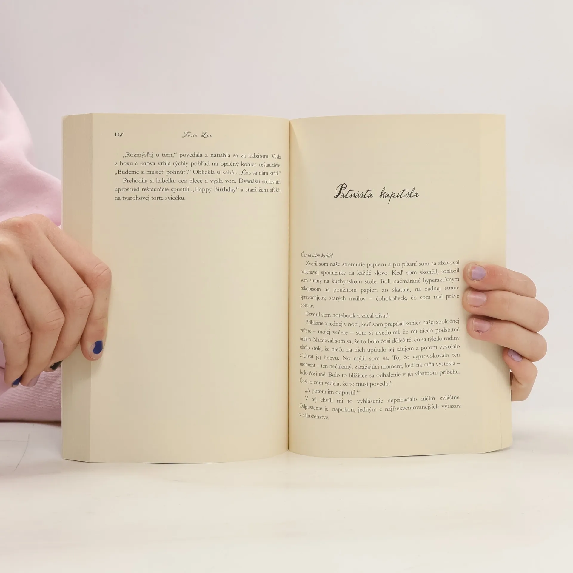 Jeden večer všetko zmení. Po nedávnom rozvode Clay zápasí s pocitom bezcieľnosti a depresie. Práca redaktora v malom bostonskom vydavateľstve ho už neuspokojuje a jeho život chýba zmysel – až kým ho jedného večera nevyhľadá Lucián. Jednoduché slová: Porozprávam ti svoj príbeh a ty ho napíšeš a vydáš, obrátia jeho život hore nohami. To, čo sa začína ako záhada, sa čoskoro zmení na chaotickú posadnutosť, keď sa Clay snaží poskladať Luciánov temný príbeh lásky a túžby – len aby zistil, že démonov príbeh sa stal jeho vlastným. A potom už záleží len na tom, ako sa príbeh skončí. Predstav si, že si sa dopustil jednej chyby. V jednej chvíli uctievaš svojho mocného Boha a Stvoriteľa a v nasledujúcej si navždy odsúdený. Poklonil si sa najvyššej bytosti a potom si musel pozorovať, ako ťa nahradila jednoduchšia a smrteľnejšia bytosť – človek. Vdýchol do tohto hlineného života svoj život a božskú inšpiráciu, čo si ty nikdy nemal. A čo ak títo hlinení ľudia tiež urobili jednu nesprávnu vec? A čo ak by si sa pozeral, ako im Boh dal zákony, ale oni by jednoducho nedokázali nerobiť chyby? Preto by sám zišiel na zem, aby s nimi žil a zomrel za nich. Žiarlil by si na nich? Nenávidel by si ich? Samozrejme, že áno. A tam sa začína tento príbeh. Tu prichádza na scénu Lucián, padlý anjel. Ponorte sa do príbehu plného milosti, vyrozprávaného z pohľadu života, ktorý žiaden život nemá.