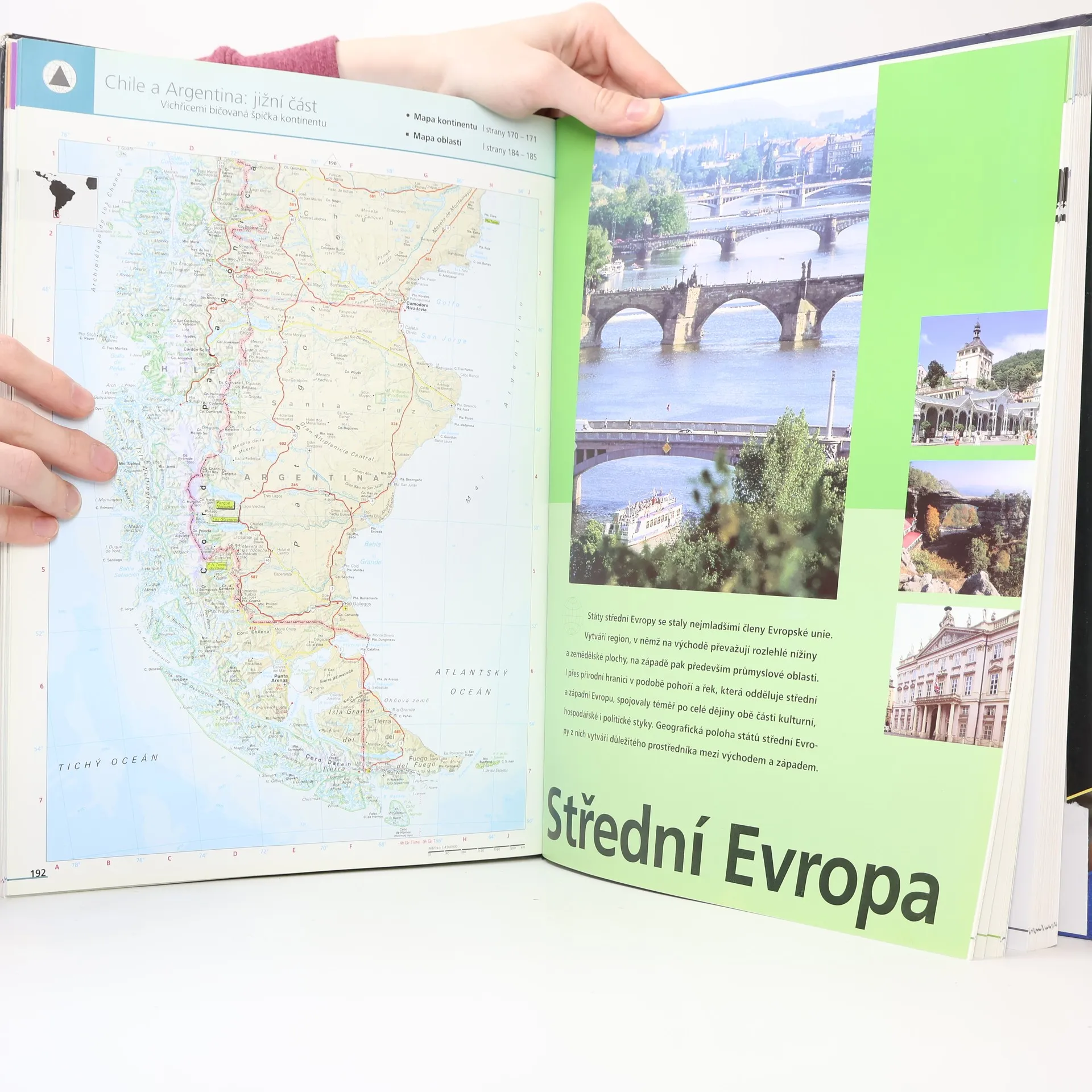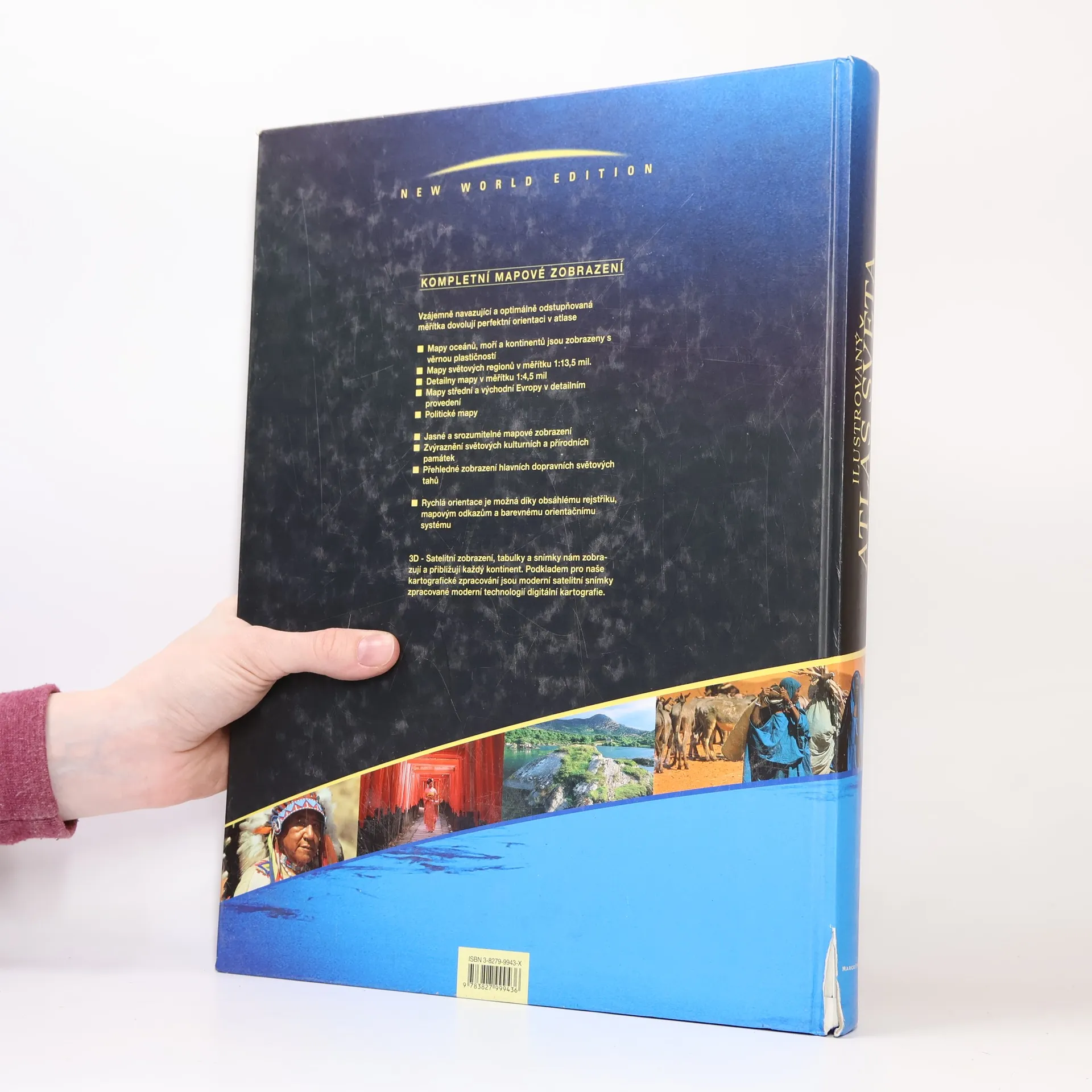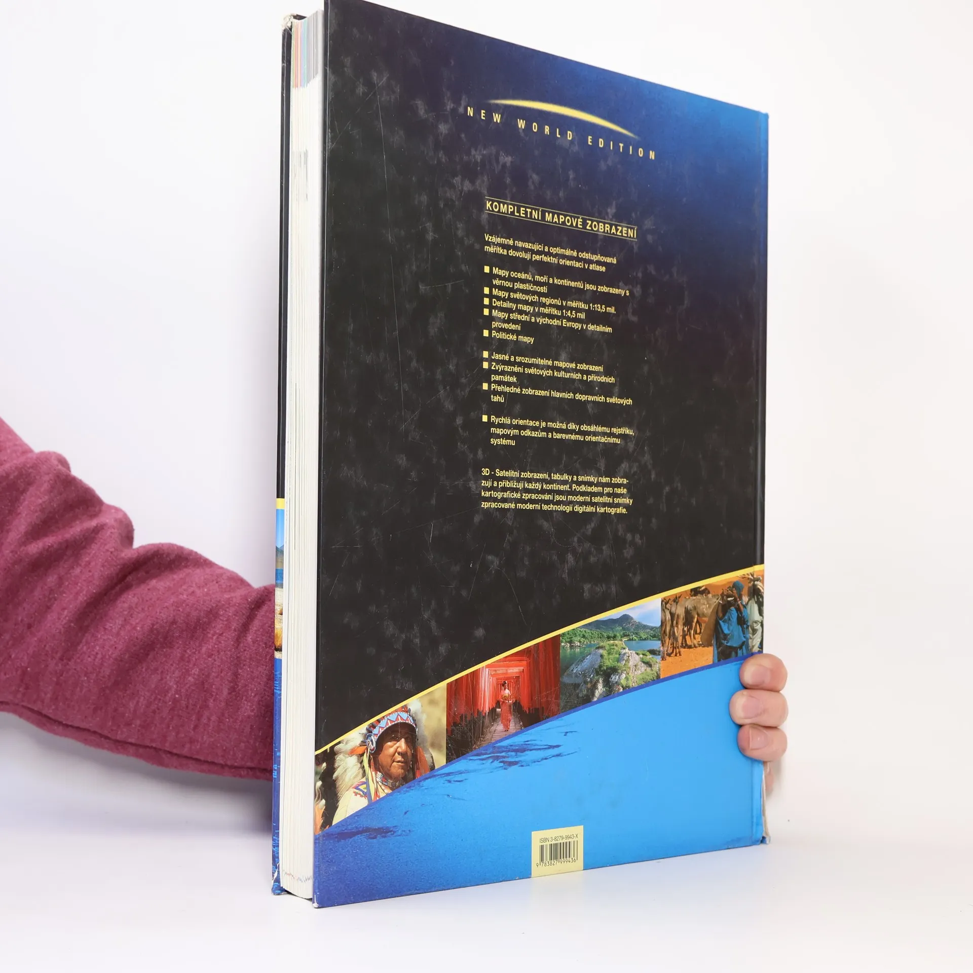 Vzájemně navazující a optimálně odstupňovaná měřítka dovolují perfektní orientaci v atlase. Mapy oceánů, moří a kontinentů jsou zobrazeny s věrnou plastičností.Mapy světových regionů v měřítku 1:13,5 mil. Detailní mapy v měřítku 1:4,5 mil. Mapy střední a východní Evropy v detailním provedení. Politické mapy. Jasné a srozumitelné mapové zobrazení. Zvýraznění světových kulturních a přírodních památek. Přehledné zobrazení hlavních dopravních světových tahů. Rychlá orientace je možná díky obsáhlému rejstříku, mapovým odkazům a barevnému orientačnímu systému.3D - Satelitní zobrazení, tabulky a snímky zobrazují a přibližují každý kontinent. Podkladem pro kartografické zpracování jsou moderní satelitní snímky zpracované moderní technologií digitální kartografie.