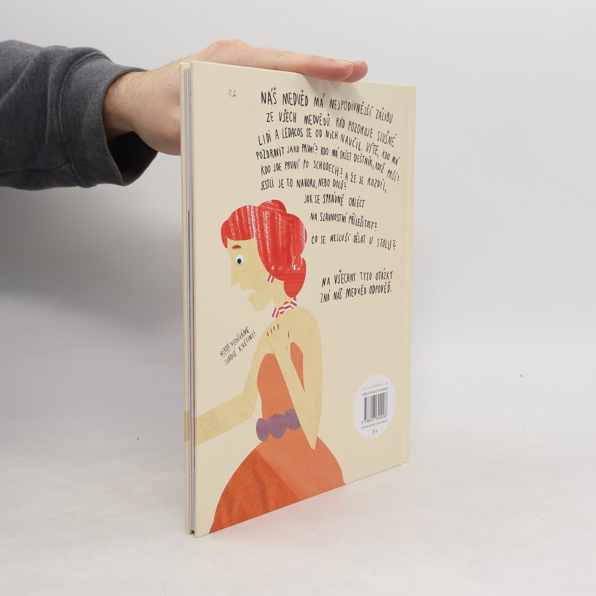 O medvědech si jistě myslíte, že jsou to neohrabaná huňatá zvířata, kterým chutná med a v čase, kdy na zemi padne sněhová přikrývka, spí hlubokým zimním spánkem. Ale náš medvěd je jiný – rád pozoruje slušné lidi a se vším, co zjistil, se chce podělit s vámi, malými čtenáři. Naučí vás zdravit, nastupovat do tramvaje, jak se obléct na různé příležitosti, jak se chovat v kině a u stolu při jídle. Dokonce vám ukáže, jak si uvázat kravatu (to se vám jako dospělým může hodit). Kniha je rozšířenou a upravenou verzí semestrální práce mladé slovenské ilustrátorky.