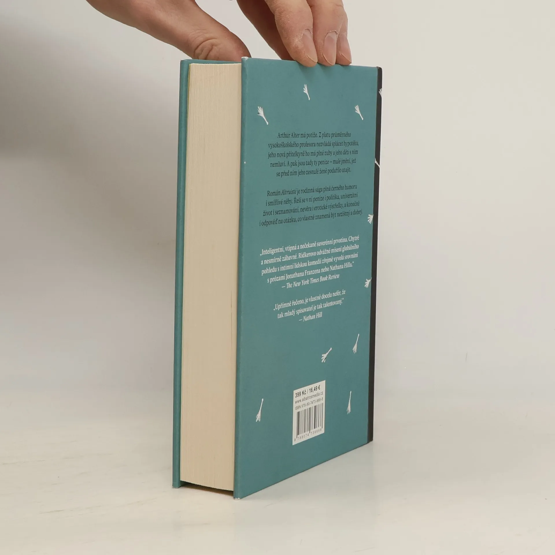 Začalo to altruismem, kdo ví, jak to skončí. Arthur Alter má potíže. Z platu průměrného vysokoškolského profesora nezvládá splácet hypotéku, jeho nová přítelkyně ho má plné zuby a jeho děti s ním nemluví. A pak jsou tu ještě ty peníze – malé jmění, jež se před ním jeho zesnulé ženě Francine podařilo utajit. A tenhle majetek Francine odkázala přímo jejich dětem: Ethanovi, věčně úzkostnému samotáři, který žije z matčiných peněz na jedné z nejžádanějších brooklynských adres, a Maggie, která se usilovně snaží páchat dobro a žít ušlechtilým životem v dobrovolně zvolené chudobě. Ve strachu ze ztráty rodinného sídla pozve Arthur pod záminkou smíření své děti domů do St. Louis. Netuší však, že tím otevřel Pandořinu skříňku dávných konfliktů a hluboko pohřbených vzpomínek. Román Altruisté je rodinná sága plná černého humoru i smířlivé něhy. Řeší se v ní peníze i politika, univerzitní život i seznamování, nevěra i erotické výstřelky, a konečně i odpověď na otázku, co vlastně znamená být „dobrým člověkem“