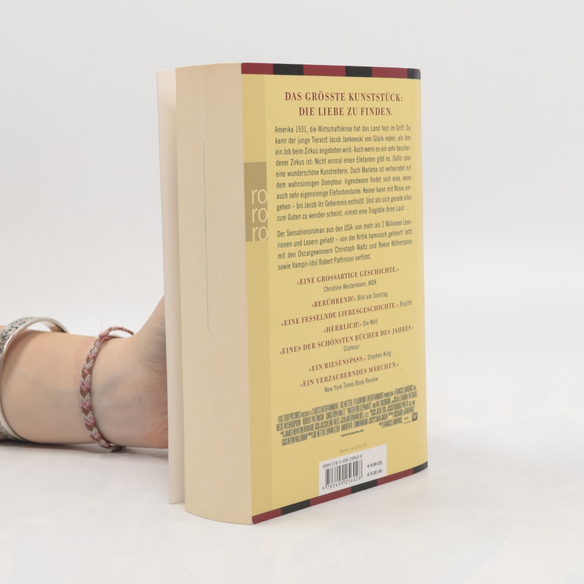 Das schwierigste Kunststück: die Liebe zu finden.Amerika 1931, die Wirtschaftskrise hat das Land fest im Griff. Da kann der junge Tierarzt Jacob Jankowski von Glück reden, als ihm ein Job beim Zirkus angeboten wird. Auch wenn es ein sehr bescheidener Zirkus ist: Nicht einmal einen Elefanten gibt es. Dafür aber eine wunderschöne Kunstreiterin. Doch Marlena ist verheiratet mit dem wahnsinnigen Dompteur. Irgendwann findet sich doch eine, wenn auch sehr eigensinnige Elefantendame. Keiner kann mit Rosie umgehen – bis Jacob ihr Geheimnis enthüllt. Und als sich gerade alles zum Guten zu wenden scheint, nimmt eine Tragödie ihren Lauf.Der Sensationsroman aus den USA: von mehr als 2 Millionen Leserinnen und Lesern geliebt – von der Kritik hymnisch gefeiert! Jetzt mit den Oscargewinnern Christoph Waltz und Reese Witherspoon sowie Vampir-Idol Robert Pattinson verfilmt.«Eine grossartige Geschichte.»Christine Westermann, WDR«Berührend!» Bild am Sonntag«Eine fesselnde Liebesgeschichte.» Brigitte«Herrlich!» Die Welt«Eines der schönsten Bücher des Jahres.» Glamour«Ein Riesenspass.» Stephen King«Ein verzauberndes Märchen.»New York Times Book Review