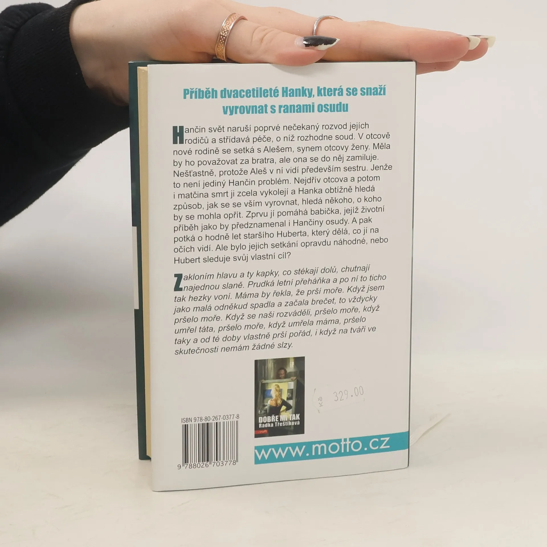 Napínavé psychologické drama jedné zdánlivě obyčejné rodiny, ve kterém autorka umožní čtenáři nahlédnout nejen do křehké duše dvacetileté Hanky, ale také do osudů dalších, vzájemně propojených postav. S lehkostí sobě vlastní vypráví nelehký příběh o pocitech. O bolesti, o nedorozumění, o strachu, o bezpodmínečné lásce, o otázkách a odpovědích, které se všichni snažíme v životě najít. O naději.