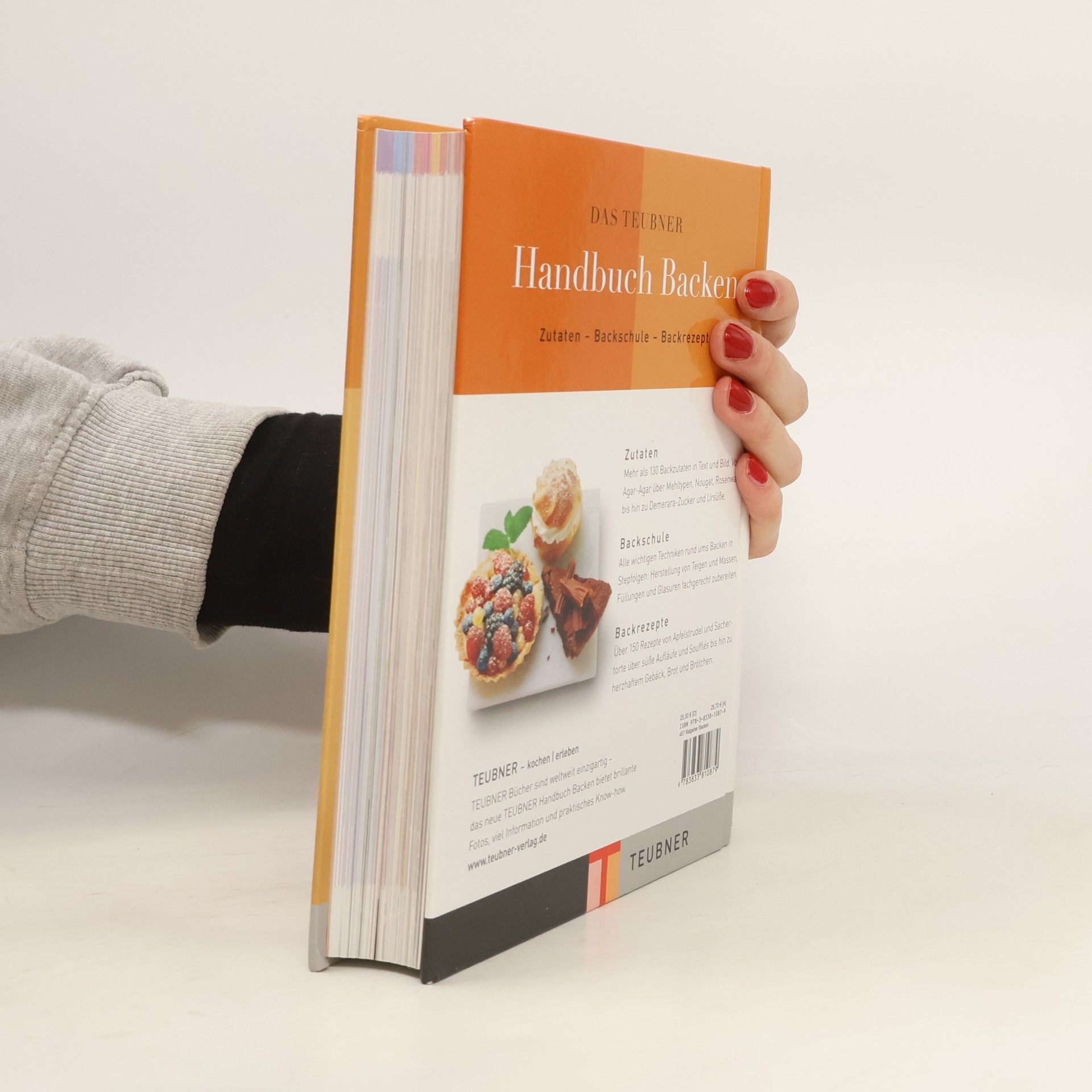 Das informative Nachschlagewerk aus der Reihe TEUBNER Handbücher bietet viel Information, Know-how und Rezepte rund um das Thema Backen. Das Buch gliedert sich in drei Teile: 1. Zutaten, d. h. Produktinformation zu mehr als 130 Backzutaten von Agar-Agar bis Zucker, 2. Backschule, d. h. Backen Schritt für Schritt in Text und Bild. Gezeigt werden die Zubereitung von Teigen und Massen, Verwendung von Kuvertüre, Umgang mit Gelatine, Wasserbad, Blindbacken und vieles mehr. 3. Backrezepte: eine umfangreiche Rezeptsammlung mit über 150 Rezepten bietet Kuchen, Torten, kleines Gebäck sowie Herzhaftes wie Pizza und Quiche aus dem Ofen. Ein PLUS sind die Themenseiten zum Beispiel zu Kaffee, Tee, zur Geschichte des Mehls, Backutensilien, Backformen, über Maße und Gewichte, Liköre und Aromen.