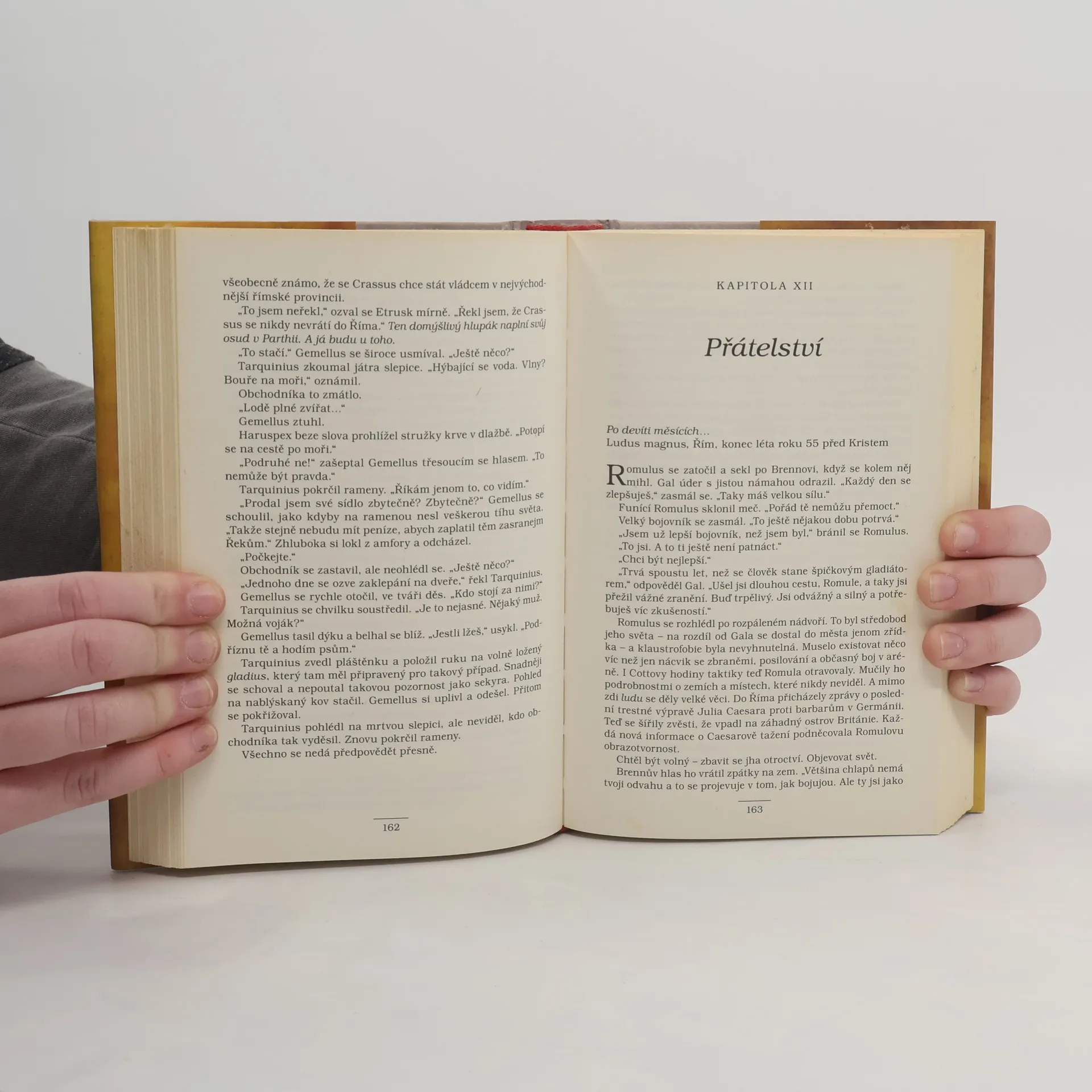 V dobrodružném historickém románu plném překvapivých zvratů zachycuje autor neklid, brutalitu i nádheru Říma v 1. století př. Kr., kdy mu vládne triumvirát Julius Caesar, Pompeius a Crassus. Čtyřmi hlavními postavami jsou však vedle dvojčat jménem Romulus a Fabiola, kteří se narodili jako otroci – Romula prodají do gladiátorské školy, Fabiolu do nevěstince – etruský válečník Tarquinius, který dokáže předvídat budoucnost, a gladiátor Brennus, jehož rodina se stala obětí císařské rozpínavosti. Crassus prahne po vojenské slávě a vytáhne proti Parthům. Právě na osudech Tarquinia, Romula a Brenna, kteří se přihlásili do Crassovy armády, sledujeme dodnes uhrančivou dobu starého Říma. Autor čtenáře seznamuje s přesnými historickými podrobnostmi, aniž by tím oslaboval spád děje.