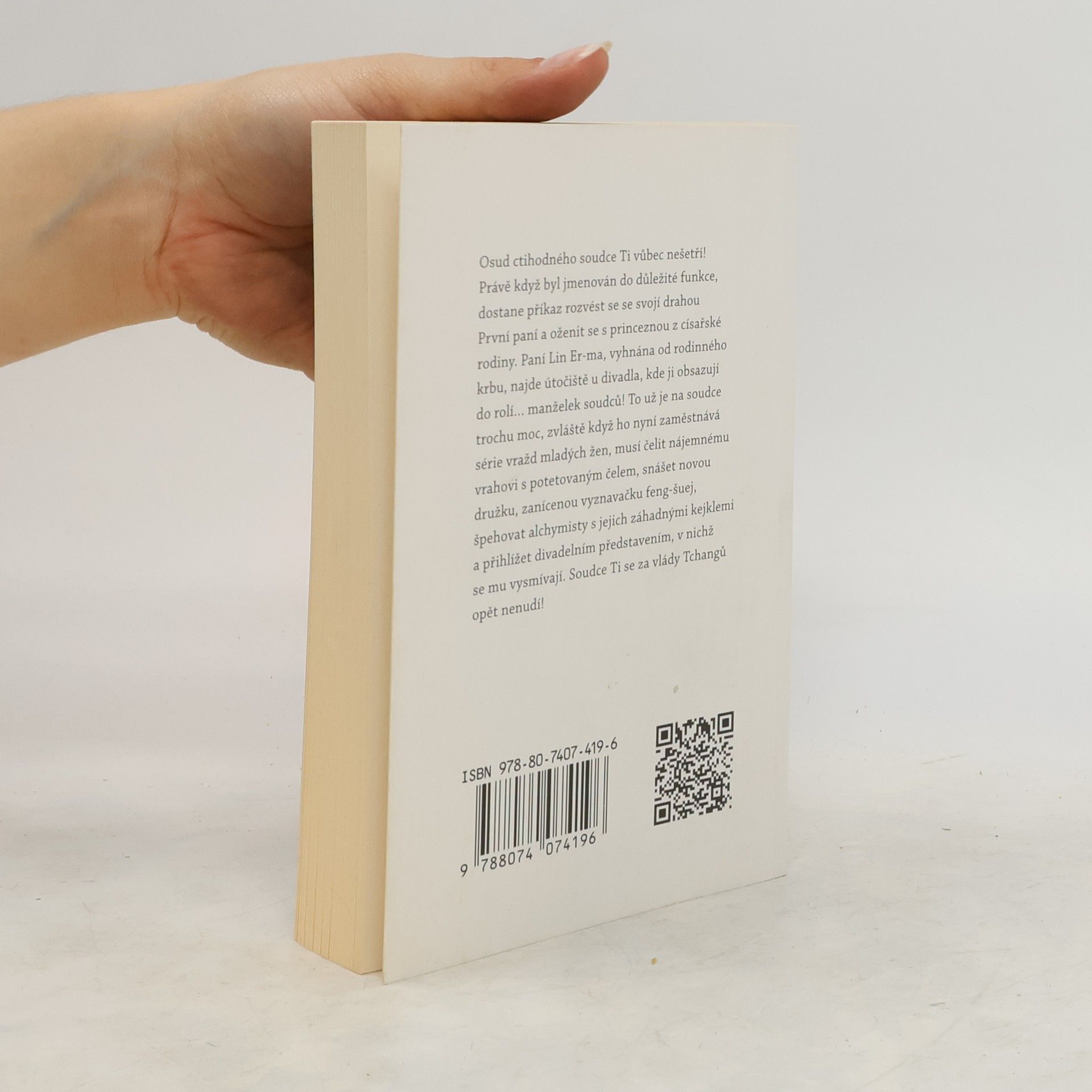 Osud ctihodného soudce Ti vůbec nešetří! Právě když byl jmenován do důležité funkce, dostane příkaz k rozvodu se svojí drahou První paní a oženit se s princeznou z císařské rodiny. Paní Lin Er-ma, vyhnána od rodinného krbu, najde útočiště u divadla, kde ji obsazují do rolí... manželek soudců! To už je na soudce trochu moc, zvláště když ho nyní zaměstnává série vražd mladých žen, musí čelit nájemnému vrahovi s potetovaným čelem, snášet novou družku, zanícenou vyznavačku feng-šuej, špehovat alchymisty s jejich záhadnými kejklemi, přihlížet divadelním představením, v nichž se mu vysmívají, a chránit svou rodinu před úklady nelítostné císařovny Wu. Soudce Ti se za vlády Tchangů opět nenudí!