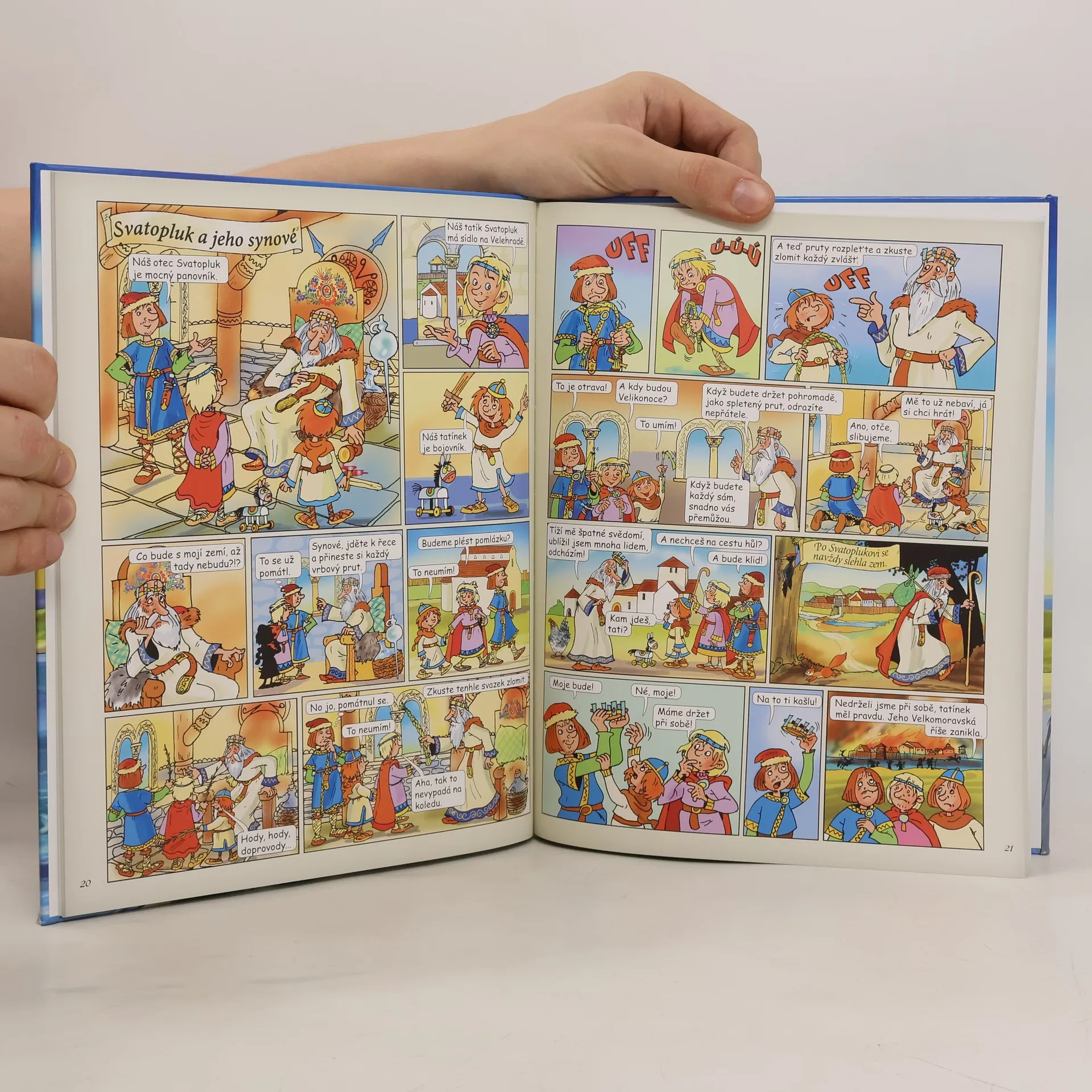 Česká historie v obráncích, s nadsázkou a humorem! V této knize ožívají prastaré legendy, mění se v zábavné kreslené příběhy a děti si je tak snadno zapamatují.Kniha obsahuje i méně známé pověsti, např. o Bílé paní nebo jak propast Macocha dostala své jméno.