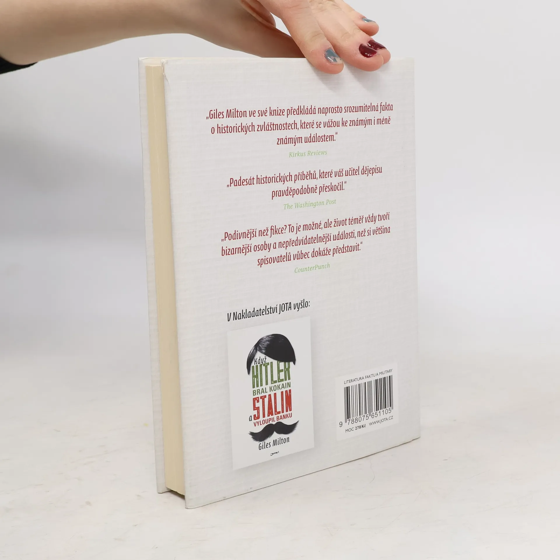 Věděli jste, že se Churchill během druhé světové války připravoval zaútočit na Německo pomocí biologických zbraní, které by zemi učinily neobyvatelnou na několik desetiletí, a obětoval tomu ovci, a to nejednu? Nebo že mozek Vladimira Iljiče Lenina je nakrájený na 30 000 tenkých plátků? Mistrovský vypravěč historických příběhů Giles Milton nám v této knize servíruje další bizarní události z nedávné i vzdálenější historie, mnohdy jen těžko uvěřitelné, ale přesto pravdivé. Slyšeli jste o tom, že se v Londýně stavěla věž, která měla svou výškou předčít pařížskou Eiffelovku? A představte si, že Spojené státy měly svého císaře! Zní to neuvěřitelně, ale přesto je to tak – historie zkrátka píše příběhy, které by nevymyslel ani ten nejkreativnější spisovatel. Druhá část knihy, kterou Milton v originále nazývá Fascinující poznámky z historie pod čarou, tak přináší dalších padesát příběhů, které se čtou jedním dechem, a čtenář se díky nim dozví leccos z toho, co se už nevešlo do hodin dějepisu.