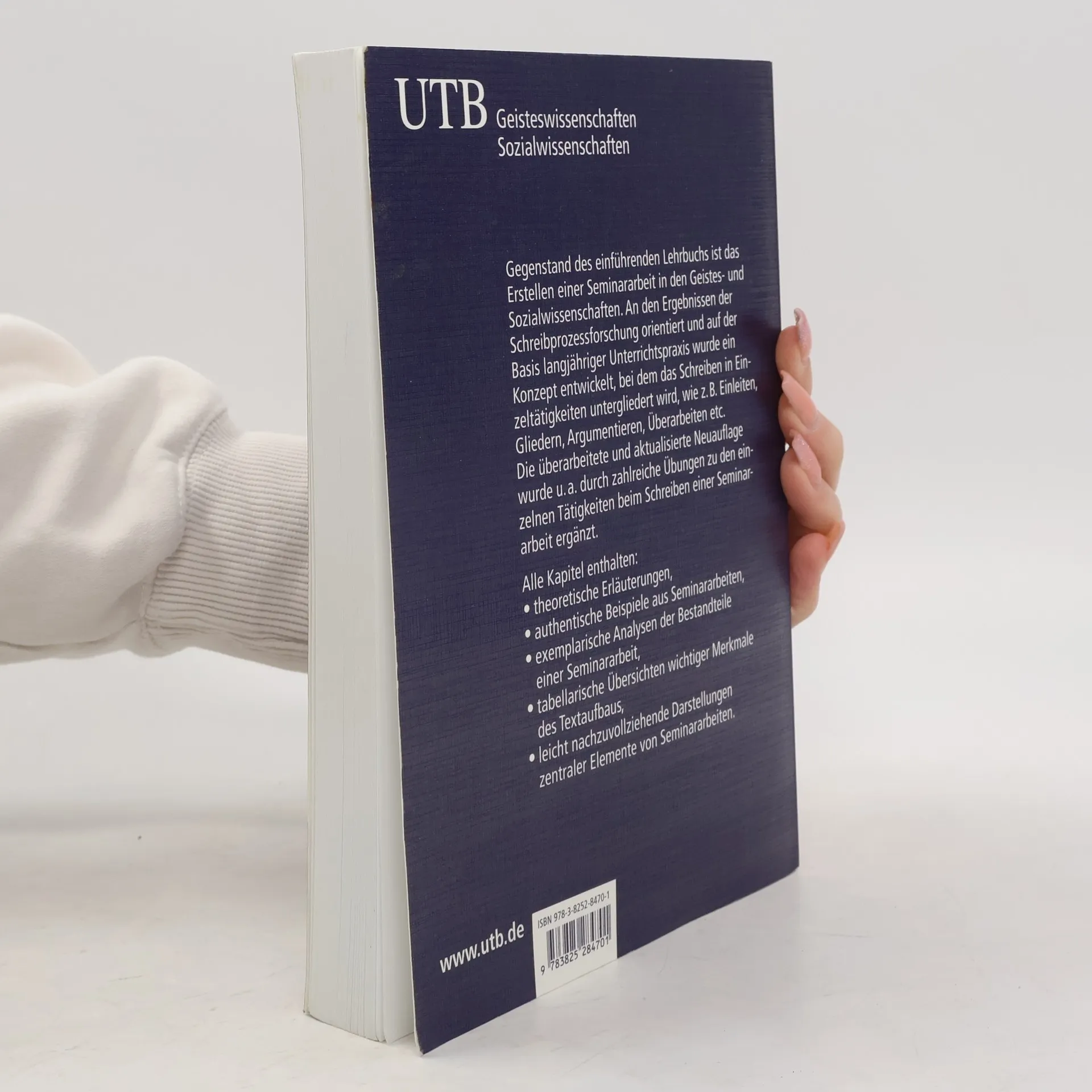 Gegenstand des einführenden Lehrbuchs ist das Erstellen einer Seminararbeit in den Geistes- und Sozialwissenschaften. An den Ergebnissen der Schreibprozessforschung orientiert und auf der Basis langjähriger Unterrichtspraxis wurde ein Konzept entwickelt, bei dem das Schreiben in Einzeltätigkeiten untergliedert wird, wie z. B. Einleiten, Gliedern, Argumentieren, Überarbeiten etc. Alle Kapitel enthalten: o theoretische Erläuterungen, o authentische Beispiele aus Seminararbeiten, o exemplarische Analysen der Bestandteile einer Seminararbeit, o tabellarische Übersichten wichtiger Merkmale des Textaufbaus, o leicht nachzuvollziehende Darstellungen zentraler Elemente von Seminararbeiten