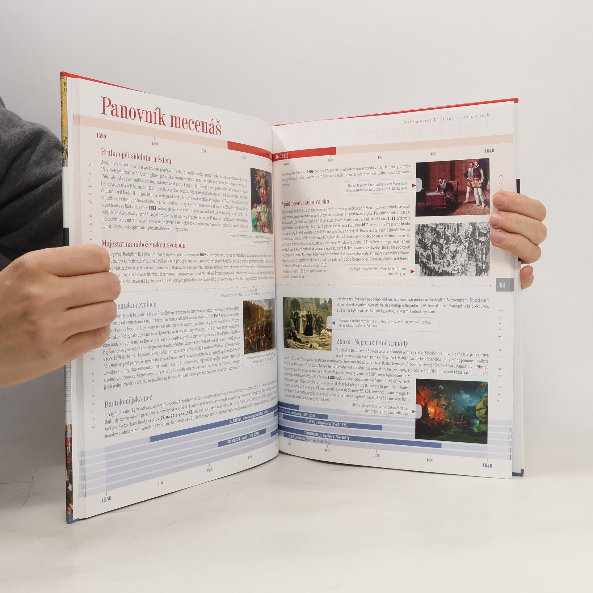 Věděli jste, že ve stejném roce, kdy husité rozprášili křižáky u Domažlic, ve Francii stavěli hranici Johance z Arcu? Napadlo vás, že ve stejné době, kdy mušketýři chránili krále Francie, popravoval kat Mydlář na Staroměstském náměstí 27 českých pánů? Tyto, a mnohé další časové souvislosti, přinášíme v naší moderní publikaci. Poznatky ze studia českých a evropských dějin, které většinou vnímáme odděleně, tak máme možnost vidět v novém světle. Praktickým doplňkem jsou přehledné časové osy, které znázorňují období vlády významných panovníků evropských zemí a jsou zpestřeny informacemi o přelomových vynálezech nebo kulturních počinech.