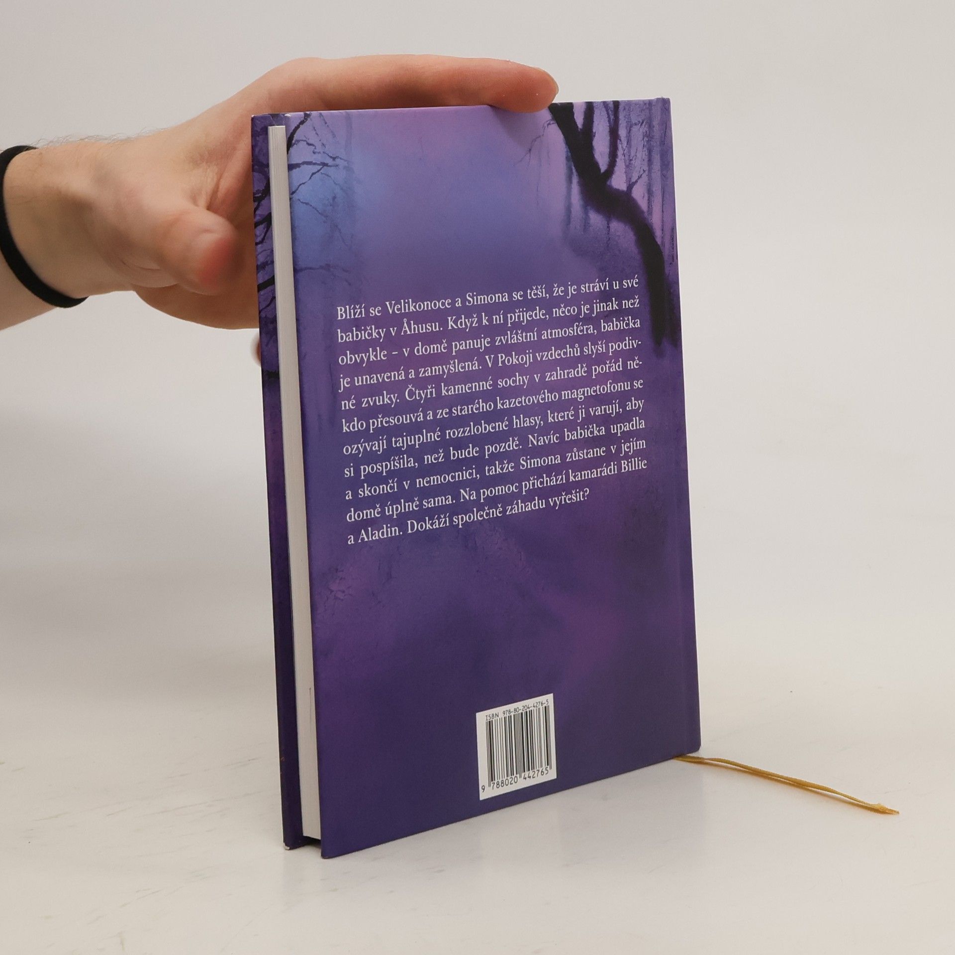 Blíží se Velikonoce a Simona se těší, že je stráví u své babičky v Ahusu. Když k ní přijede, něco je jinak než obvykle – v domě panuje zvláštní atmosféra a babička je unavená a zamyšlená. Z Pokoje vzdechů se ozývají podivné zvuky. Čtyři kamenné sochy v zahradě pořád někdo přesouvá a ze starého kazetového magnetofonu se ozývají tajuplné rozzlobené hlasy, které ji varují, aby si pospíšila, než bude pozdě. Navíc babička upadla a skončí v nemocnici, takže Simona zůstane v jejím domě úplně sama. Dokáže společně s kamarády Billie a Aladinem záhadu vyřešit?