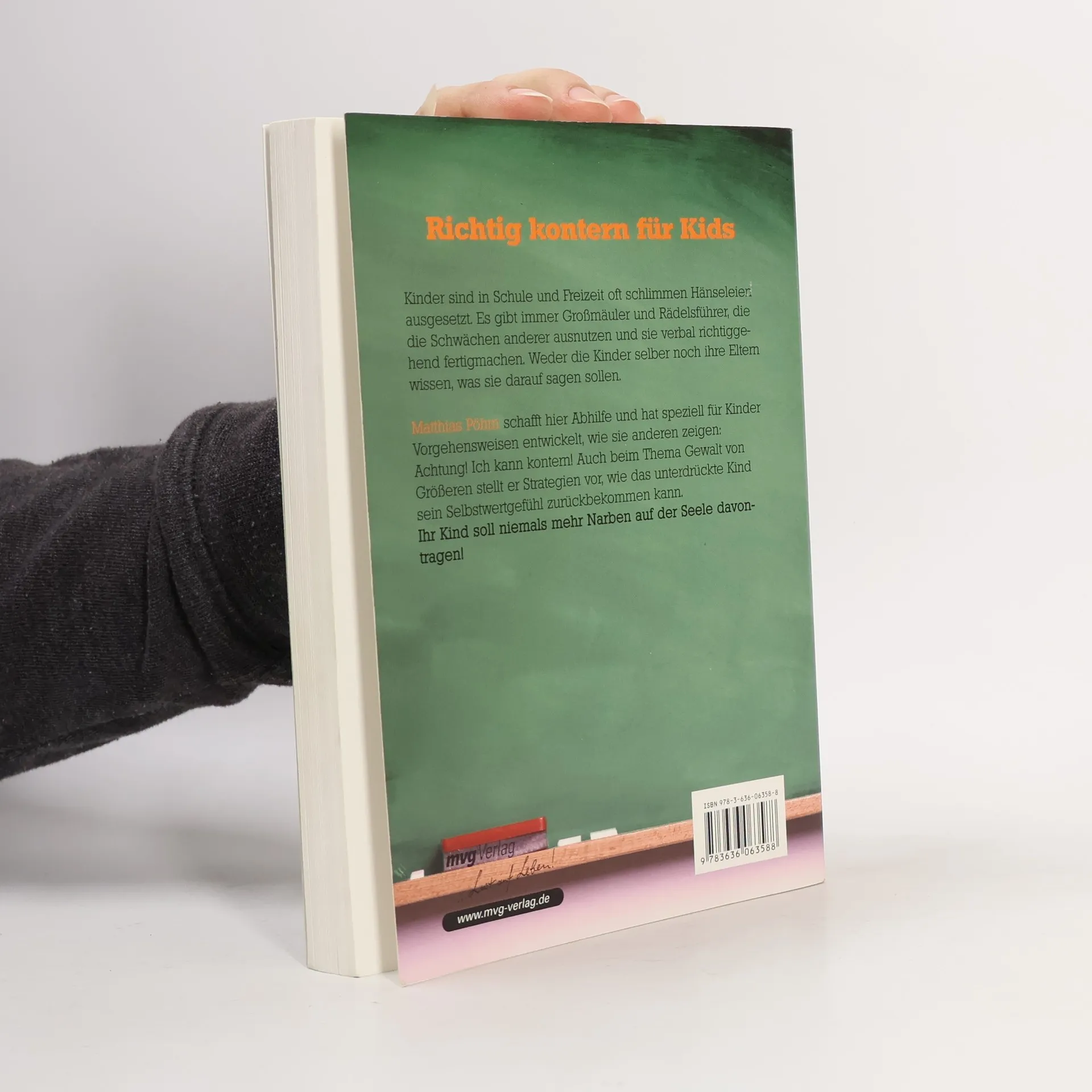 Unsere Zeit ist auch für die Kids gnadenloser geworden: Jedes 5. Kind in Deutschland hat bereits einen Schulkameraden so heftig geschlagen, dass er ärztlich behandelt werden musste. Kinder sind in Schule und Freizeit oft schlimmen Hänseleien ausgesetzt. Einer ist zu dick, die andere hat eine Zahnspange, der dritte ist Ausländer und die vierte trägt eine Brille. Es gibt immer Großmäuler und Rädelsführer, die die Schwächen anderer ausnutzen und sie verbal richtiggehend fertigmachen. Viele Kinder gehen mit Angst zur Schule. Ihre einzige Strategie ist, zuzuschlagen oder zu schweigen und Narben auf der Seele davonzutragen. Matthias Pöhm will hier Abhilfe schaffen und hat speziell für Kinder Strategien entwickelt, wie sie anderen zeigen: Achtung! Ich kann kontern!