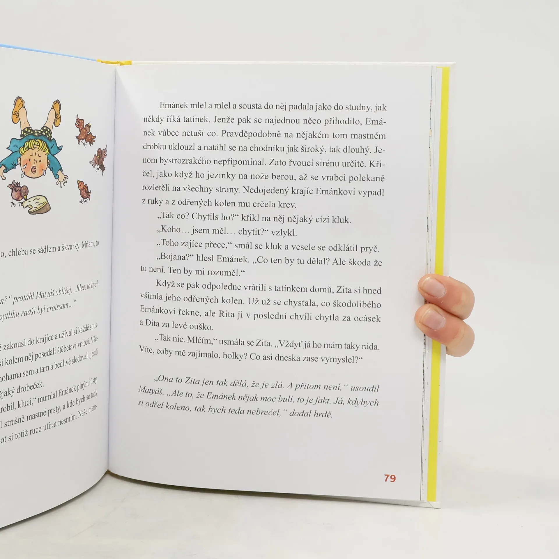 Malý Matyáš neví, jak přesně vypadá veverka. Nakreslil ji s puntíky, ale to se jeho tatínkovi vůbec nelíbilo. A hlavně by se to nelíbilo Matyášově pradědečkovi Emanovi. Ten totiž vyrůstal v hájovně a lesní zvířátka měl za své kamarády. Matyášův tatínek se rozhodne, že bude synovi vyprávět o tom, co všechno pradědeček zažil, když byl ještě malým Emánkem. Na větvích tehdy skákaly veverky Dita, Rita a Zita, po louce se proháněl zajíc Bojan a nad všemi poletoval všetečný ptáček Jarabáček. A dopravní prostředky vypadaly úplně jinak než dnes.
