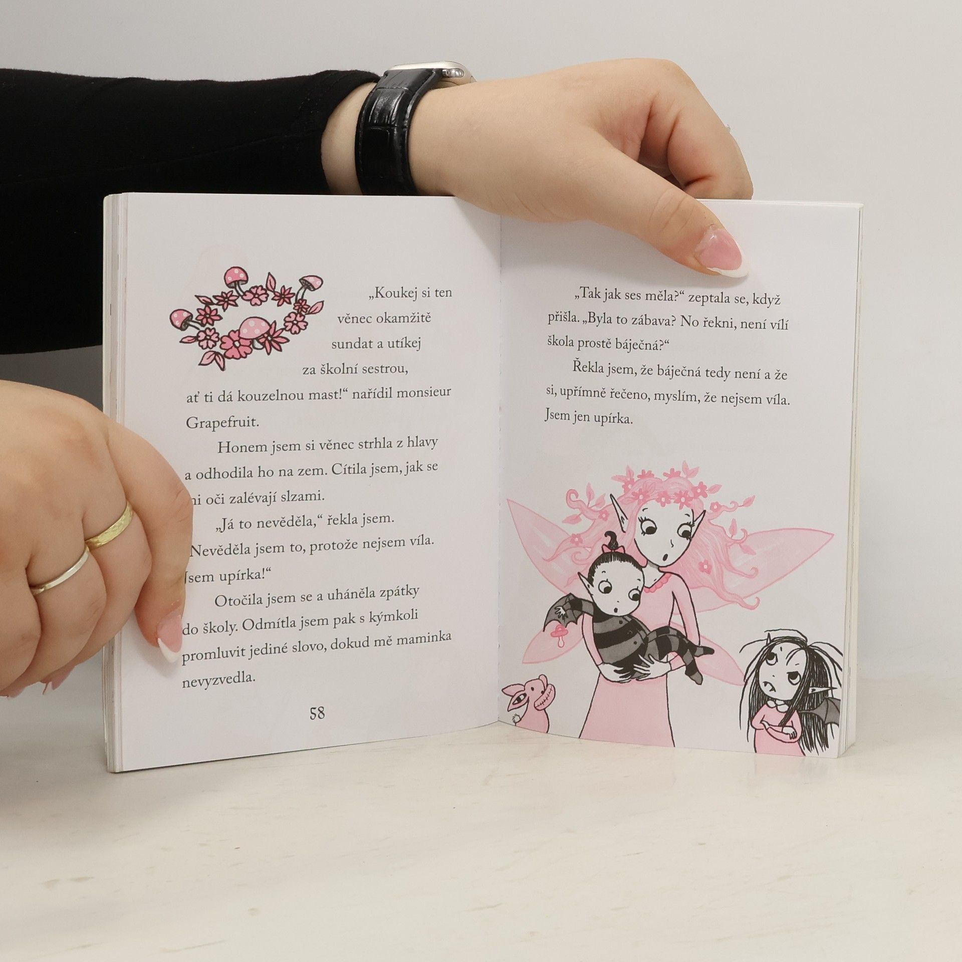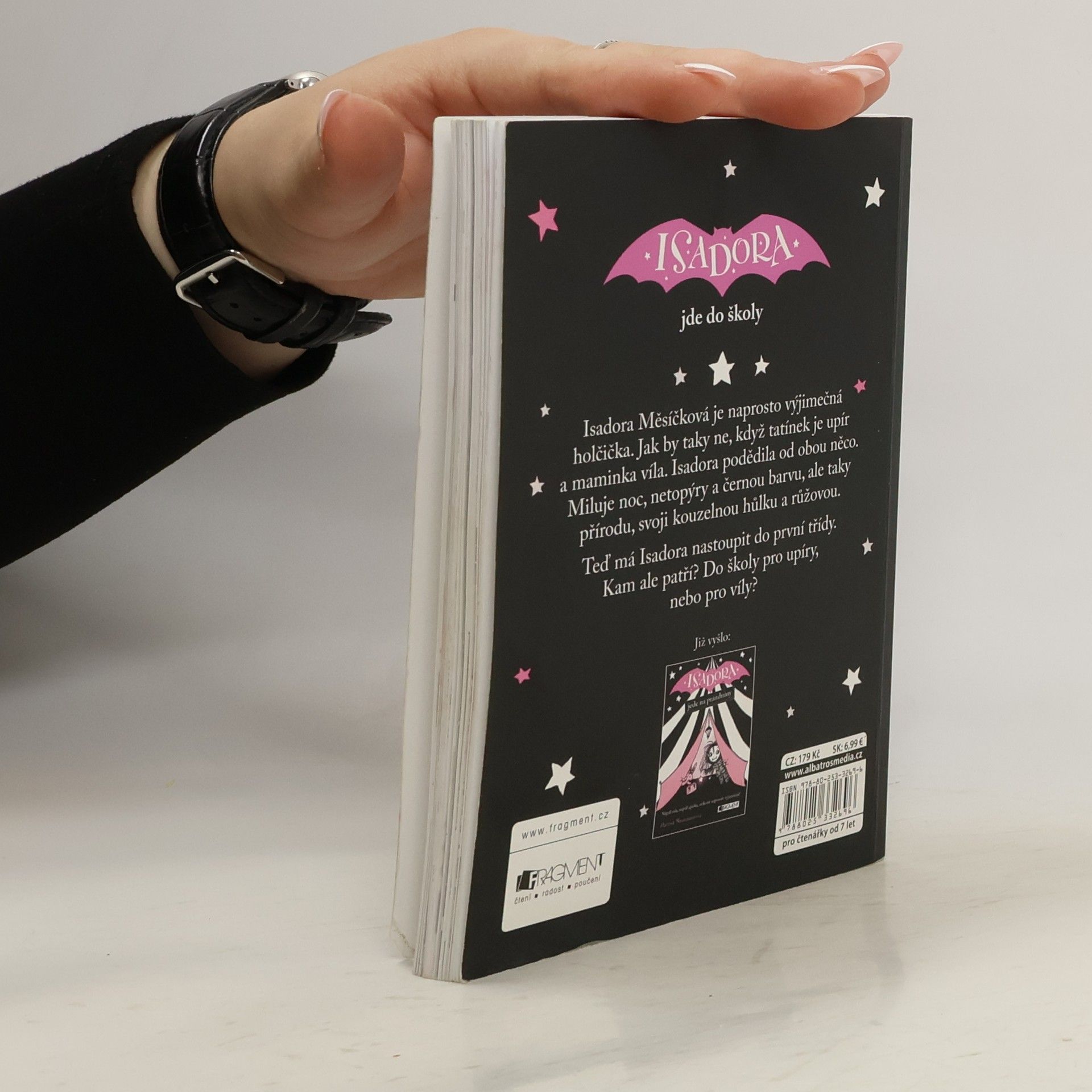 Isadora Měsíčková je naprosto výjimečná holčička. Jak by taky ne, když tatínek je upír a maminka víla. Isadora podědila od obou něco. Miluje noc, netopýry a černou barvu, ale taky přírodu, svoji kouzelnou hůlku a růžovou. Teď má Isadora nastoupit do první třídy. Kam ale patří? Do školy pro upíry, nebo pro víly?