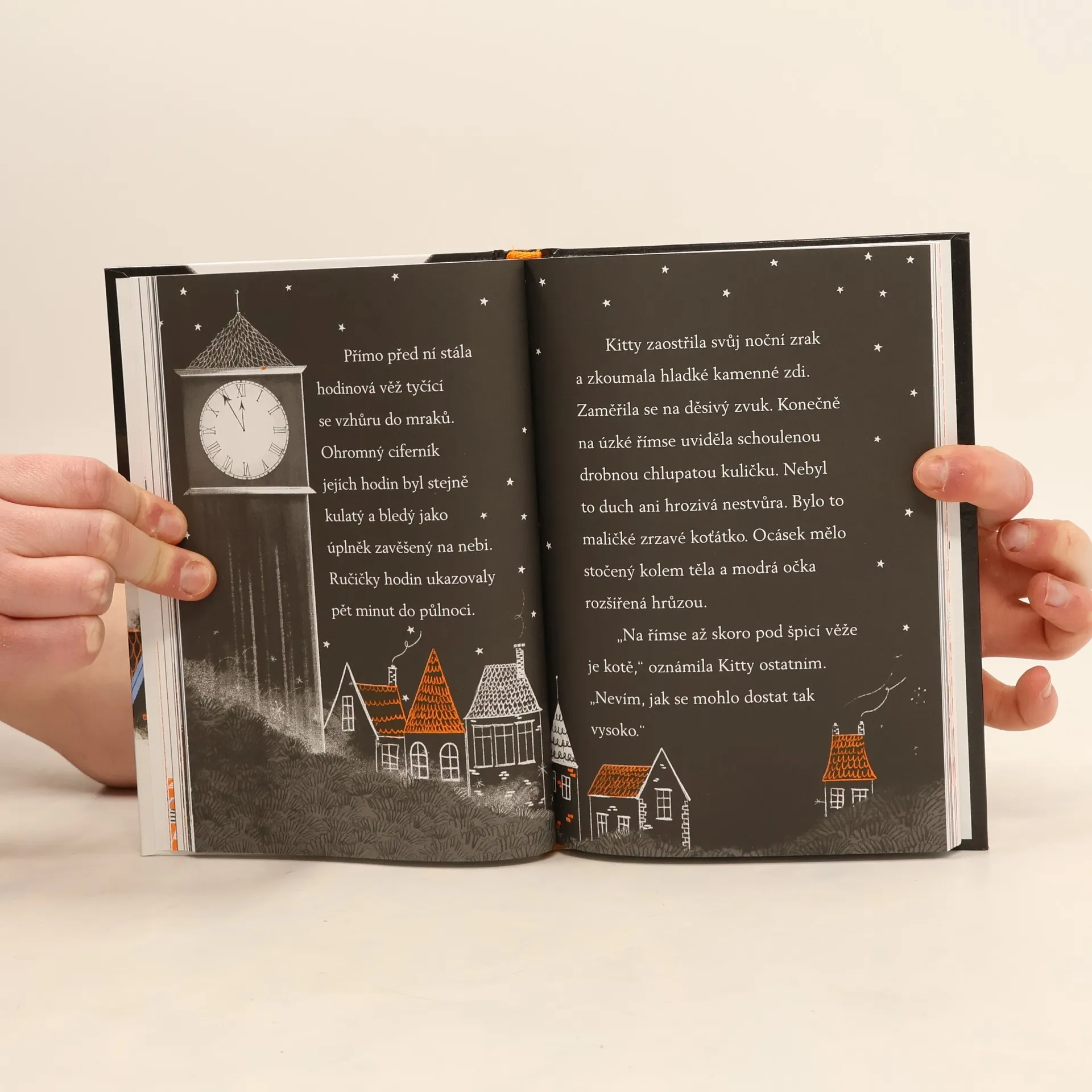 Úžasné dobrodružství za měsíčního svitu… Kitty má jedno velké tajemství – její maminka má kočičí superschopnosti. Kitty se těší, že jednou bude stejně jako ona běhat v noci po střechách a pomáhat lidem a zvířátkům. A první dobrodružství na sebe nenechá dlouho čekat. O pomoc ji požádá kocour Figaro. Jenomže Kitty se bojí tmy a noční svět je tak děsivé místo! Najde dost odvahy, aby překonala svůj strach a vydala se do strašidelné tmy? Dokáže pomoct zvířátkům v nouzi, pro která je poslední nadějí?