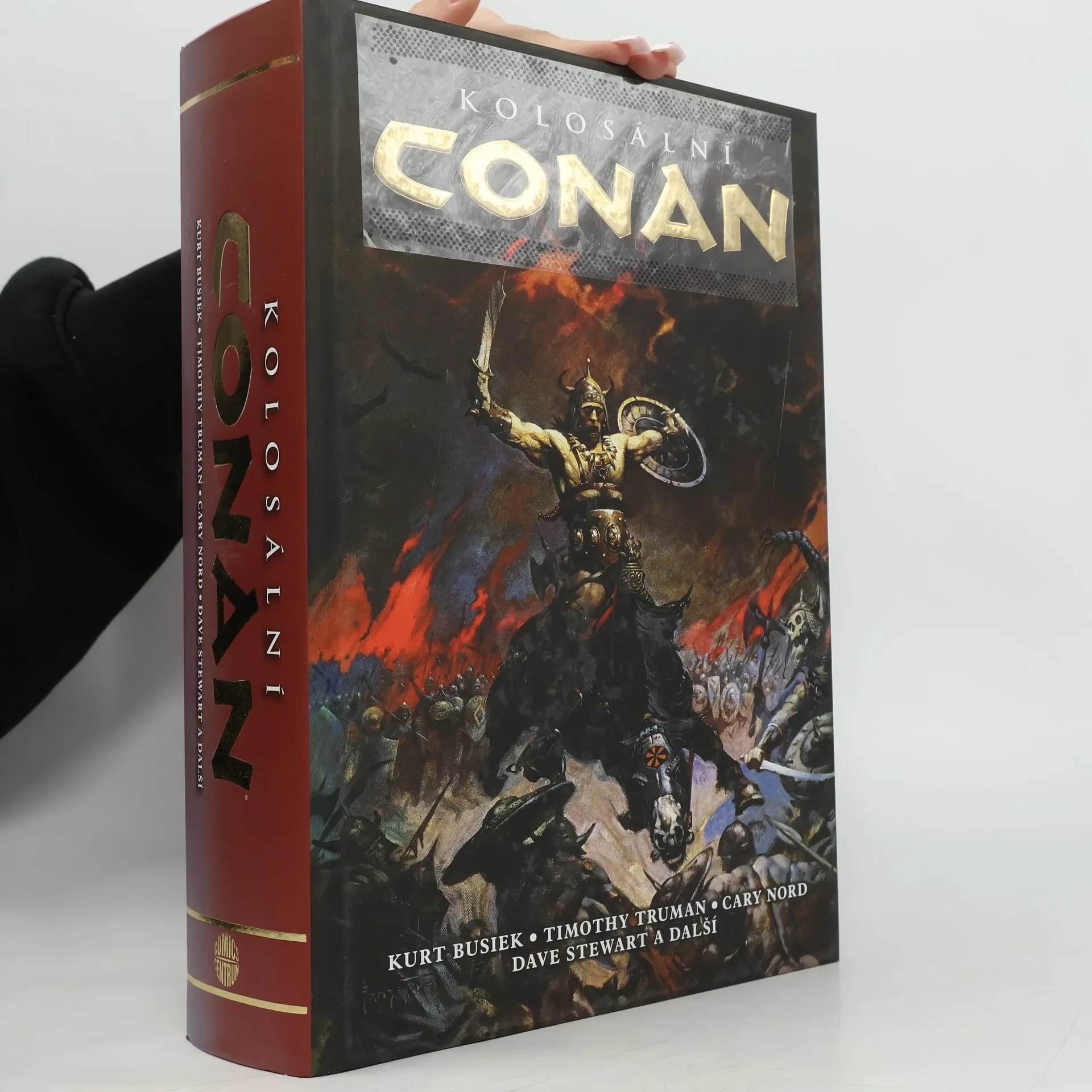 Velkoformátová kniha o 1264 stranách, obsahuje celou sérii 51 sešitů velmi úspěšné a překrásně kreslené série Conan. Kolosální Conan vychází přímo z původních povídek tvůrce Conana spisovatele Roberta E. Howarda (Dcera pána mrazu, Bůh v míse, Věž slona, Síň mrtvých, Darebáci v domě, Nergalova paže) a každou si bere za základ vlastního románu. Na Howarda je velmi obtížné navazovat, ale Kurtu Busiekovi, který nad celou sérií držel dohled, se to skvěle podařilo a všichni příznivci slavného barbara budou určitě víc než spokojeni. Knihu přeložil Jan Kantůrek, který Conana pro nás v České republice a na Slovensku objevil. Výjimečnost této knihy podtrhuje obálka legendárního malíře fantaskních světů Franka Frazetty. Svazek obsahuje: - 51 sešitů série Conan - předmluvu Kurta Busieka - doslov Timothyho Trumana - 1264 barevných stran O knize „Mezi okamžikem, kdy oceány pohltily pyšnou Atlantidu, a vzestupem synů Aryových, bylo údobí o němž se dnešním lidem ani nesní. Do něj se zapsal Conan, černovlasý, se zasmušilým pohledem a mečem v pěsti, zloděj, nájezdník a zabiják, plný velkých zármutků i bezuzdného veselí, aby srazil drahokamy zdobené trůny Země pod podrážky svých kožených sandálů.“ Nechte se pohltit příběhy plnými odvážných mužů a krásných žen. Přeneste se do světa ve kterém prastarým říším vládne tajemná magie a krutá božstva. Do světa ve kterém je na každém kroku cítit vzduch dobrodružstvím.