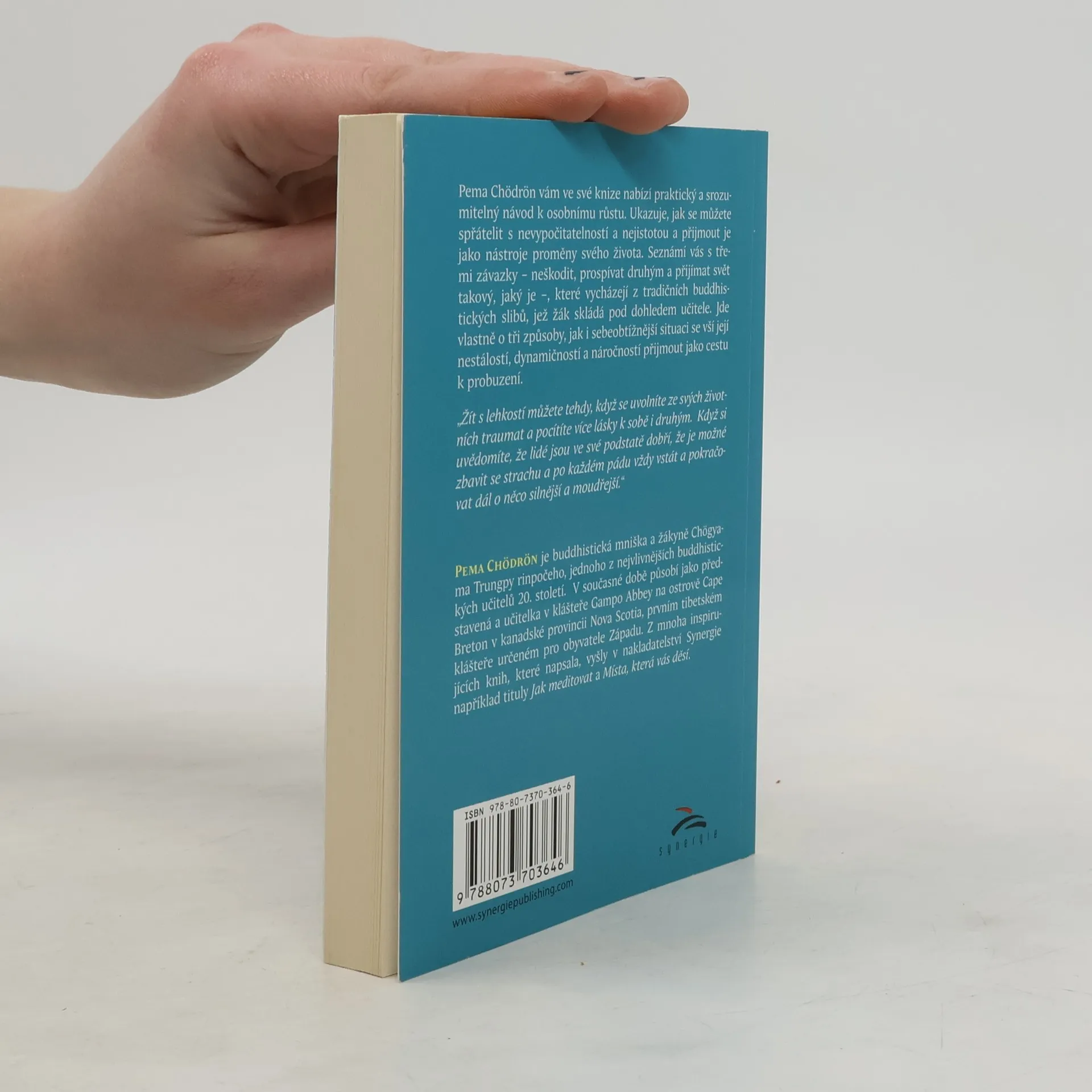 Pema Chödrön vám ve své knize nabízí prakticky´ a srozumitelný návod k osobnímu růstu. Ukazuje, jak se můžete spřátelit s nevypočitatelností a nejistotou a přijmout je jako nástroje proměny svého života. Seznámí vás se třemi závazky – neškodit, prospívat druhým a přijímat svět takový, jaký je –, které vycházejí z tradičních buddhistických slibů, jež žák skládá pod dohledem učitele. Jde vlastně o tři způsoby, jak i sebeobtížnější situaci se vší její nestálostí, dynamičností a náročností přijmout jako cestu k probuzení. „Žít s lehkostí můžete tehdy, když se uvolníte ze svých životních traumat a pocítíte více lásky k sobě i druhým. Když si uvědomíte, že lidé jsou ve své podstatě dobří, že je možné zbavit se strachu a po každém pádu vždy vstát a pokračovat dál o něco silnější a moudřejší.“
