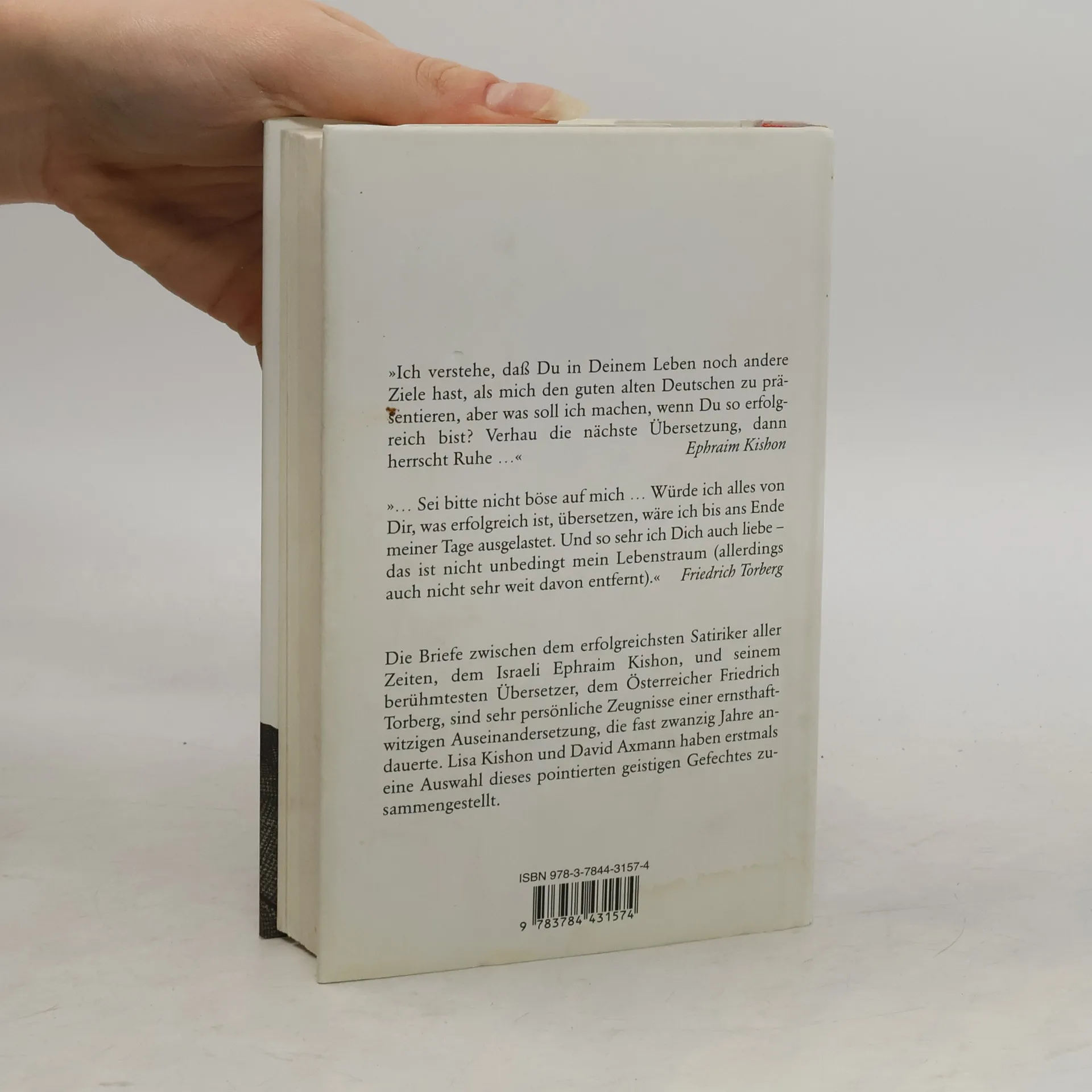 „Ich verstehe, daß Du in Deinem Leben noch andere Ziele hat, als mich den guten alten Deutschen zu präsentieren, aber was soll ich machen, wenn Du so erfolgreich bist? Verhau die nächste Übersetzung, dann herrscht Ruhe ...” Ephraim Kishon „ ... Sei bitte nicht böse auf mich ... Würde ich alles von Dir, was erfolgreich ist, übersetzen, wäre ich bis ans Ende meiner Tage ausgelastet. Und so sehr ich Dich auch liebe – das ist nicht unbedingt mein Lebenstraum (allerdings auch nicht sehr weit davon entfernt).” Friedrich Torberg Die Briefe zwischen dem erfolgreichsten Satiriker aller Zeiten, dem Israeli Ephraim Kishon, und seinem berühmtesten Übersetzer, dem Österreicher Friedrich Torberg, sind sehr persönliche Zeugnisse einer ernsthaft-witzigen Auseinandersetzung, die fast zwanzig Jahre andauerte. Lisa Kishon und David Axmann haben erstmals eine Auswahl dieses pointierten geistigen Gefechtes zusaMMengestellt.