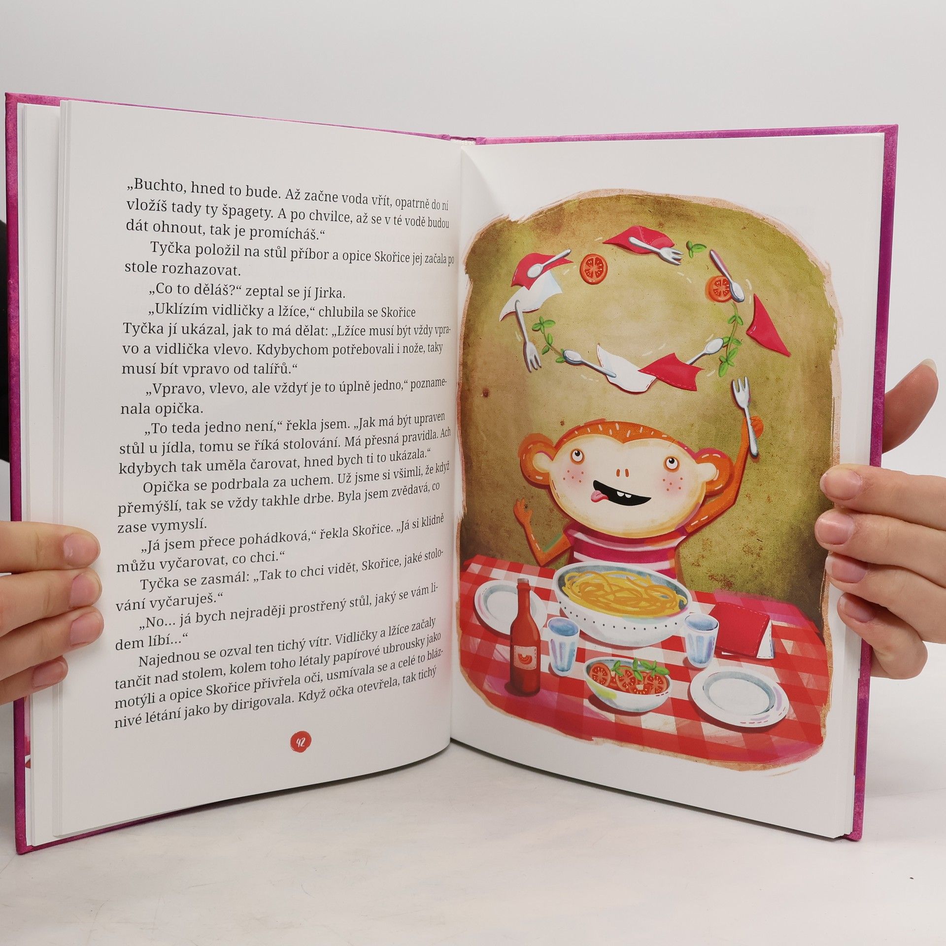 Opice Skořice není obyčejná opička! Nejenže je to velká neposeda, což opice bývají, ale navíc je nepředstavitelně upovídaná. A tahle opice se jednoho dne zčistajasna objeví v pokoji holčičky Emilky a chová se hůř než opice! Emilka a její kamarádi Tyčka a Buchta se rozhodnou, že se s tím musí něco udělat! Vždyť by ji nemohli vzít ani na ulici nebo do školy. A tak ji postupně vysvětlí zásady slušného chování doma, na ulici, u počítače, ve škole i v restauraci. A o veselé příhody při tom vychovávání rozhodně není nouze.