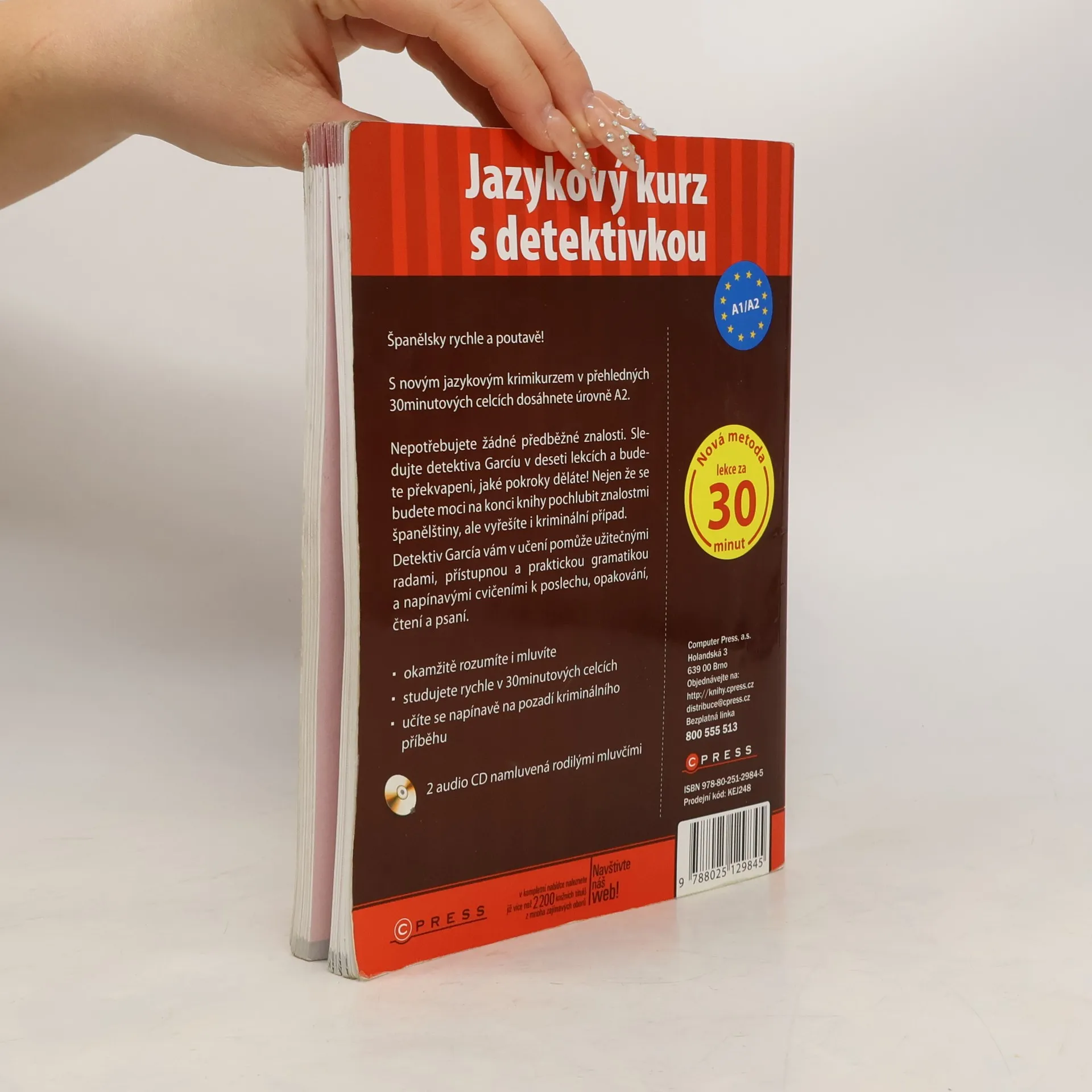 Španělsky rychle a poutavě! S jazykovým kurzem v přehledných třicetiminutových celcích dosáhnete úrovně A2. Nepotřebujete žádné předběžné znalosti: Sledujte detektiva Garcíu v 10 lekcích a budete překvapeni, jaké pokroky děláte! Naučíte se dobře španělsky a navíc vyřešíte kriminální případ. Detektiv García vám učení ulehčí radami, praktickou gramatikou a napínavými cvičeními k poslechu, opakování, čtení a psaní.
