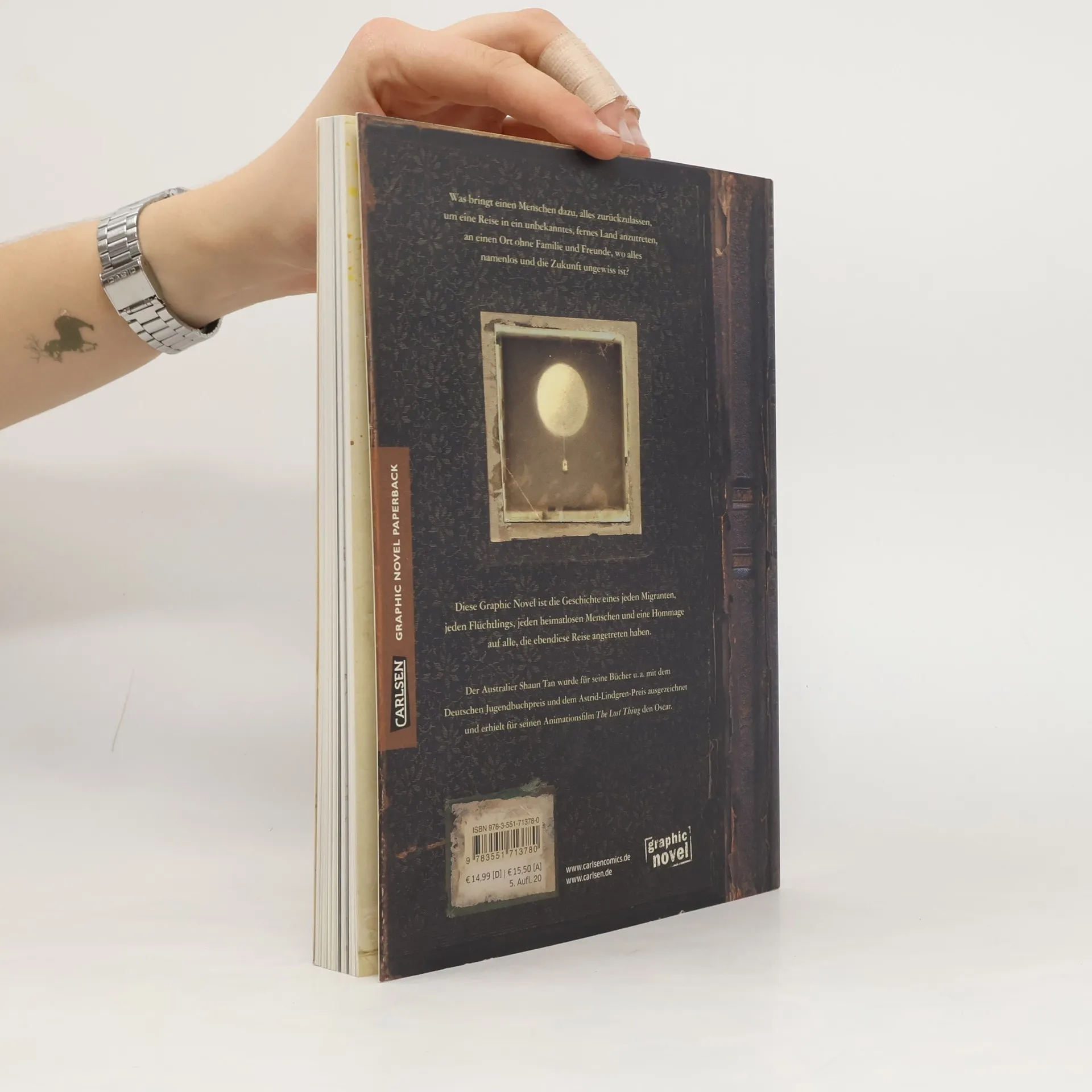 Diese Graphic Novel kommt ohne Worte aus, denn Shaun Tan hat ein außerordentliches Talent in Bildern zu erzählen, und wurde für seinen Animationsfilm „Die Fundsache“ mit einem Oskar ausgezeichnet. „Ein neues Land“ ist die zeitlose Geschichte einer Ankunft in einer fremden neuen Welt und steht für die kleinen und großen Wanderungen im Leben.