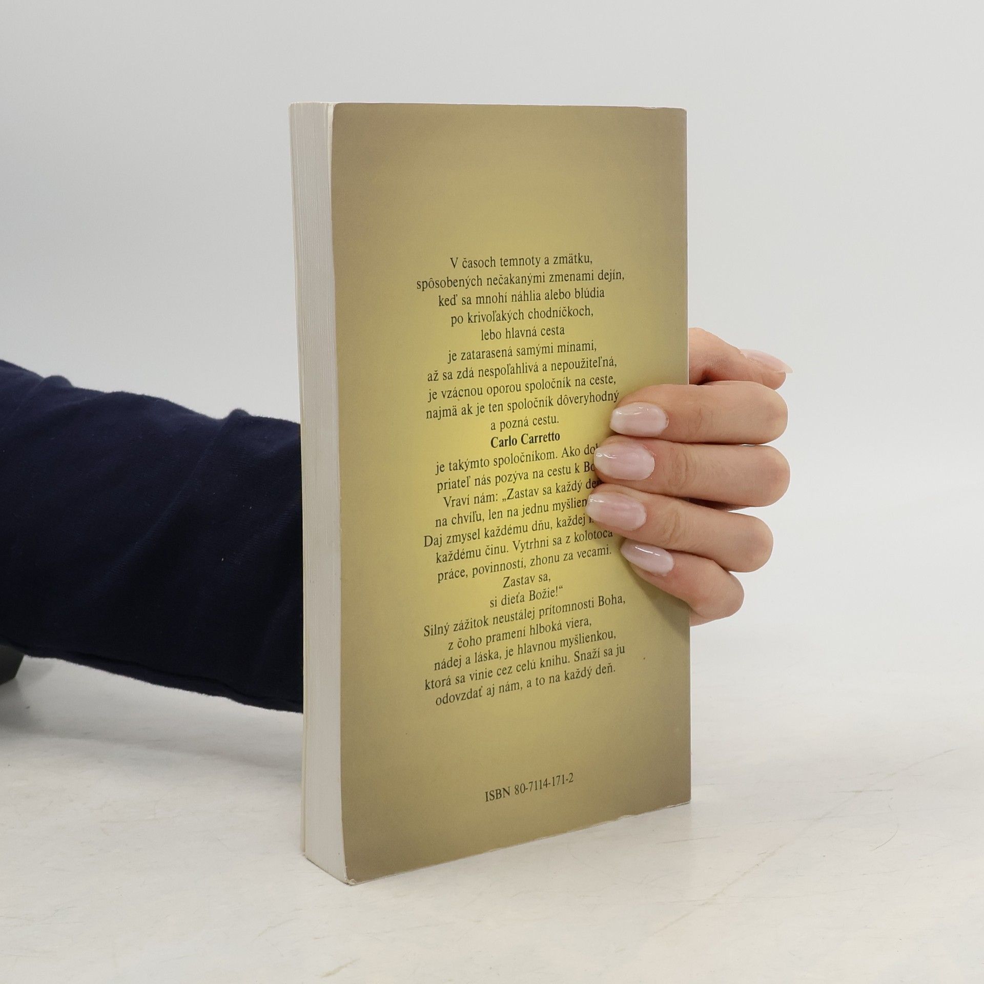 Carretto – ako dobrý priateľ – nás pozýva na cestu k Bohu. Vraví nám: „Zastav sa každý deň, na chvíľu, len jednu myšlienočku. Daj zmysel každému dňu, každej hodine, každému činu. Vytrhni sa z kolotoča práce, povinností, zhonu za vecami. Zastav sa, si dieťa Božie.“
