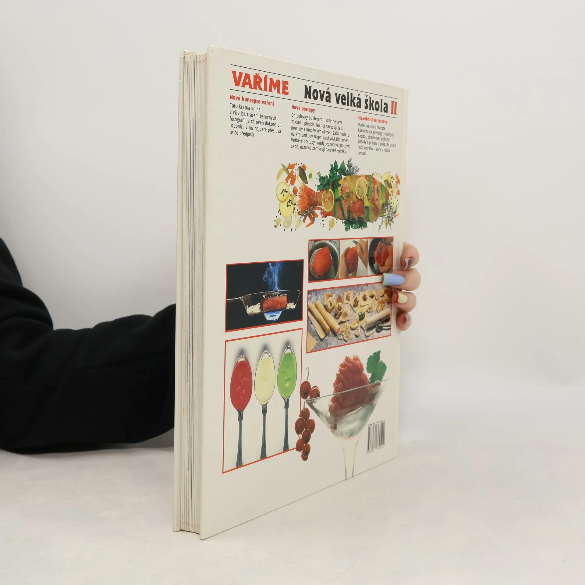 Navazuje na Nová velká škola I - Pečeme. Obsahuje 1000 barevných fotografií a 2000 zajímavých předpisů. Kniha spíš pro začátečníky. Podrobně dokumentované postupy. Rozděleno do kapitol Těstoviny, Zelenina, Maso,...