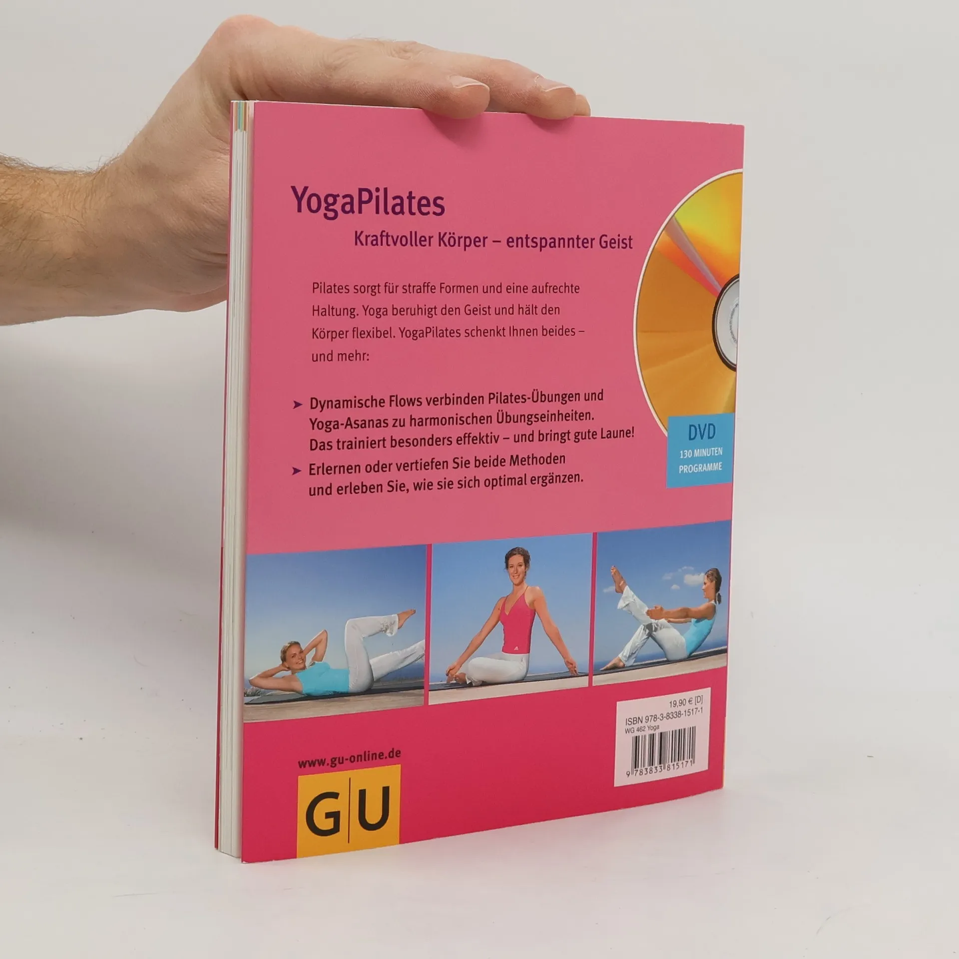 Pilates und Yoga sind seit Jahren die beliebtesten Übungsmethoden für Fitness und Gesundheit. Pilates stärkt vor allem die wichtige Tiefenmuskulatur und sorgt für eine gute Aufrichtung der Wirbelsäule. Yoga hält den Körper flexibel und lenkt den Blick nach innen. So beruhigt und konzentriert es den Geist und sorgt gleichzeitig für emotionale Ausgeglichenheit. Beide Methoden unterstützen und bereichern sich gegenseitig. So entsteht ein vielseitiges, ganzheitliches Workout, bei dem Yoga- wie Pilates-Übende, ebenso wie Anfänger auf beiden Gebieten stark profitieren. Eine Besonderheit sind die kombinierten YogaPilates-Flows auf der DVD. Hier werden Übungen beider Methoden zu einem fließenden, abwechslungsreichen Workout vereint. Maximaler Nutzen und lang anhaltende Übungsfreude garantiert!