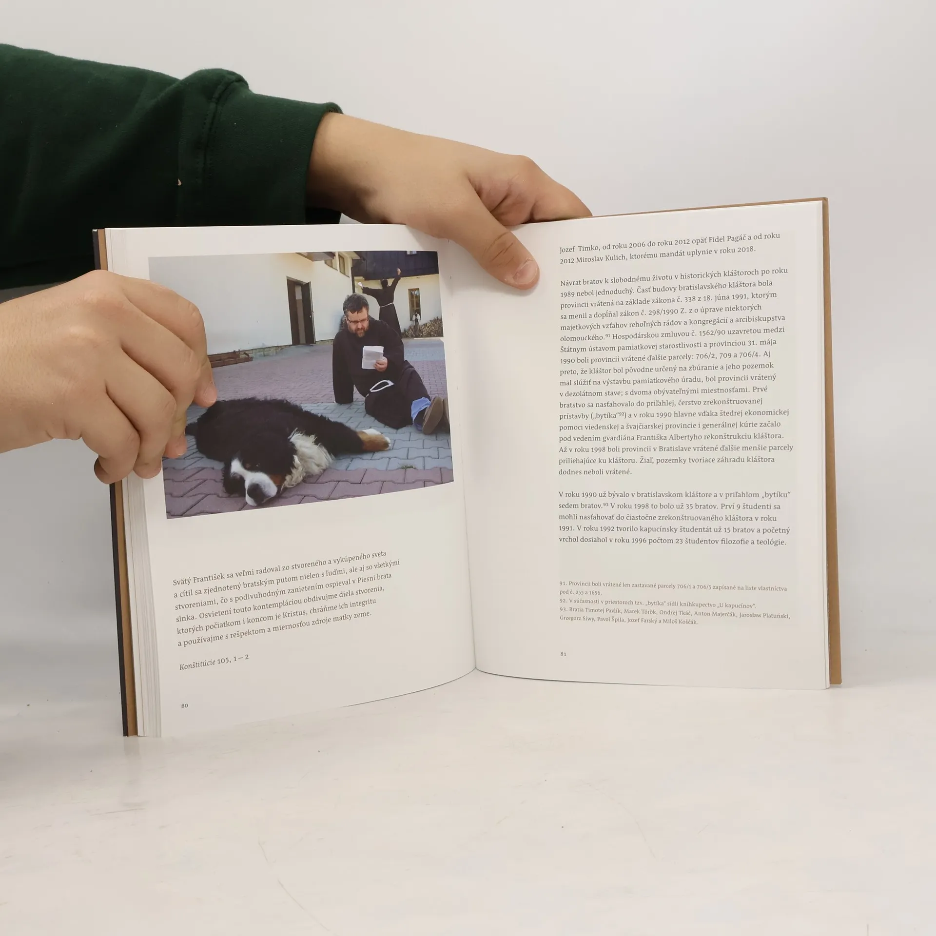 Kniha mapuje prvé stopy kapucínov na slovenskom území, ktoré viedli k ich prvému usídleniu v Pezinku v roku 1674 a v Bratislave v roku 1676, zakladanie kláštorov, pohnuté dejiny slovenských bratov a slovenských kláštorov v 20. storočí i obnovu ich života po roku 1989. Autor rámuje komplikovaný a vzrušujúci európsky františkánsky i kapucínsky príbeh rádovou spiritualitou a čitateľa necháva nahliadnuť do vlastných kapucínskych inšpiračných prameňov. Dnes má slovenská provincia 67 bratov, 7 kláštorov a domov na Slovensku a jeden na Islande.