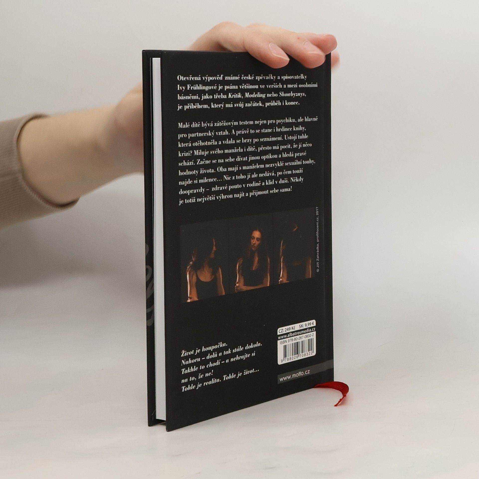 Otevřená výpověď známé české zpěvačky a spisovatelky Ivy Frühlingové je psána většinou ve verších a mezi osobními básněmi, jako třeba Kritik, Modeling nebo Showbyznys, je příběhem, který má svůj začátek, průběh i konec. Malé dítě bývá zátěžovým testem nejen pro psychiku, ale hlavně pro partnerský vztah. A právě to se stane i hrdince knihy, která otěhotněla a vdala se brzy po seznámení. Ustojí tuhle krizi? Miluje svého manžela i dítě, přesto má pocit, že jí něco schází. Začne se na sebe dívat jinou optikou a hledá pravé hodnoty života. Oba mají s manželem nezvyklé sexuální touhy, najde si milence… Nic z toho jí ale nedává, po čem touží doopravdy - zdravé pouto v rodině a klid v duši. Někdy je totiž největší výhrou najít a přijmout sebe sama! Život je houpačka. Nahoru – dolů a tak stále dokola. Takhle to chodí – a nehrajte si na to, že ne! Tohle je realita. Tohle je život...