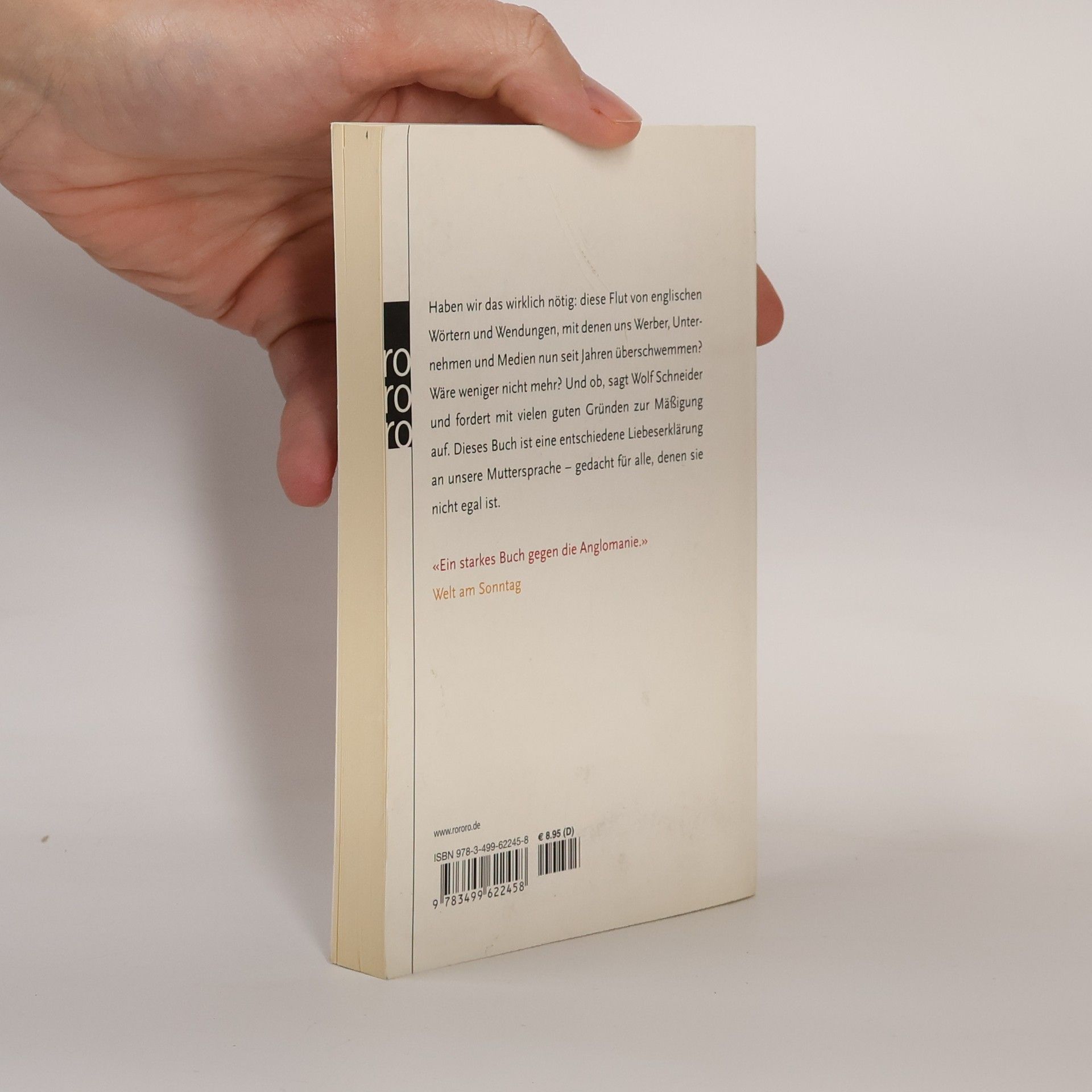 Haben wir das wirklich nötig: diese Flut von englischen Wörtern und Wendungen, mit denen uns Werber, Unternehmen und Medien nun seit Jahren überschwemmen? Wäre weniger nicht mehr? Und ob, sagt Wolf Schneider und fordert mit vielen guten Gründen zur Mäßigung auf. Dieses Buch ist eine entschiedene Liebeserklärung an unsere Muttersprache – gedacht für alle, denen sie nicht egal ist. «Ein starkes Buch gegen die Anglomanie.» Welt am Sonntag