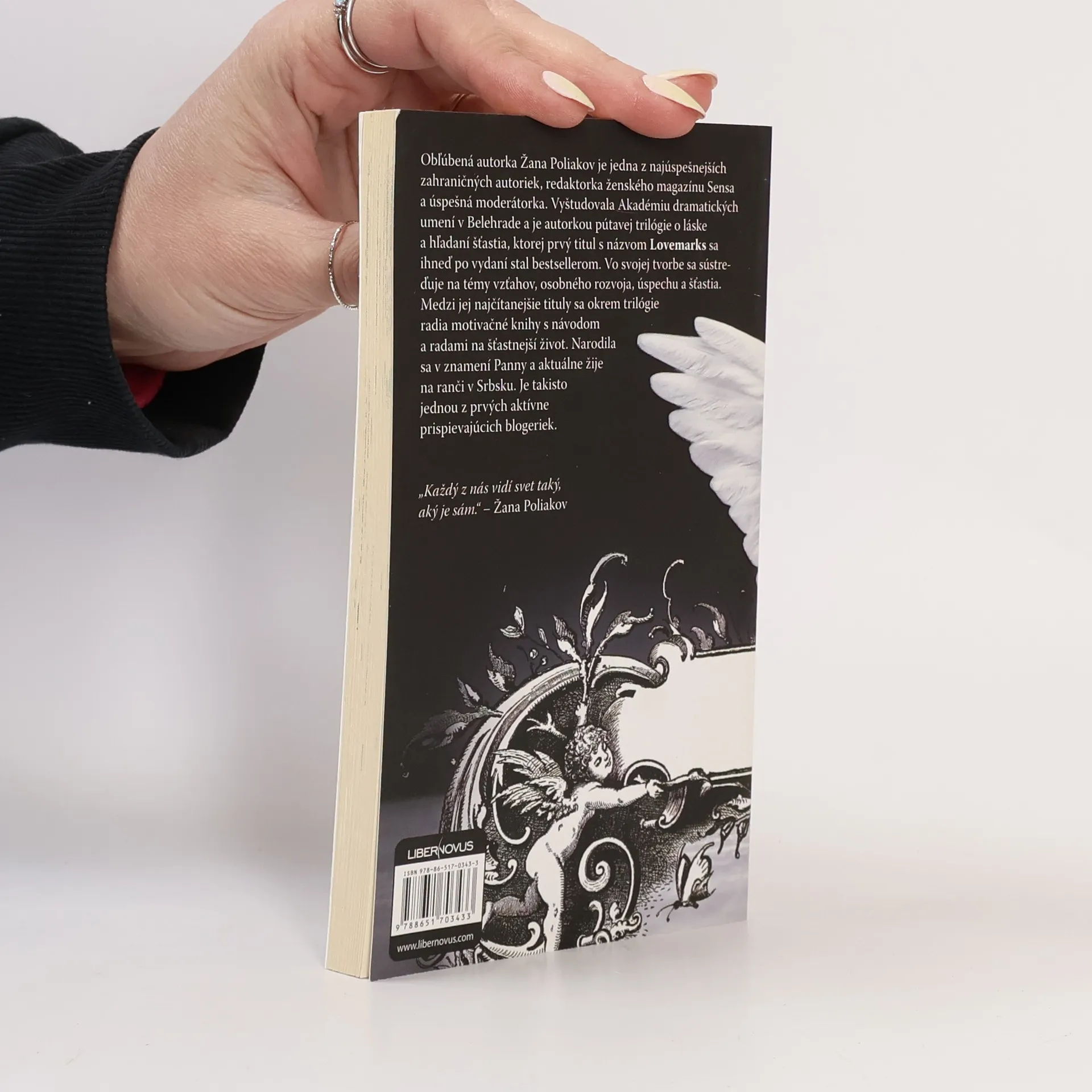 Populárna autorka Žana Poliakov je jedna z najúspešnejších zahraničných autoriek, redaktorka ženského magazínu Sensa a úspešná moderátorka. Vyštudovala Akadémiu dramatických umení v Belehrade a je autorkou pútavej trilógie o láske a hľadaní šťastia, ktorej prvý titul s názvom Lovemarks sa ihneď po vydaní stal bestsellerom. Vo svojej tvorbe sa sústreďuje na témy vzťahov, osobného rozvoja, úspechu a šťastia. Medzi jej najčítanejšie tituly sa okrem trilógie radia motivačné knihy s návodom a radami na šťastnejší život. Narodila sa v znamení Panny a aktuálne žije na ranči v Srbsku. Je takisto jednou z prvých aktívne prispievajúcich blogeriek.