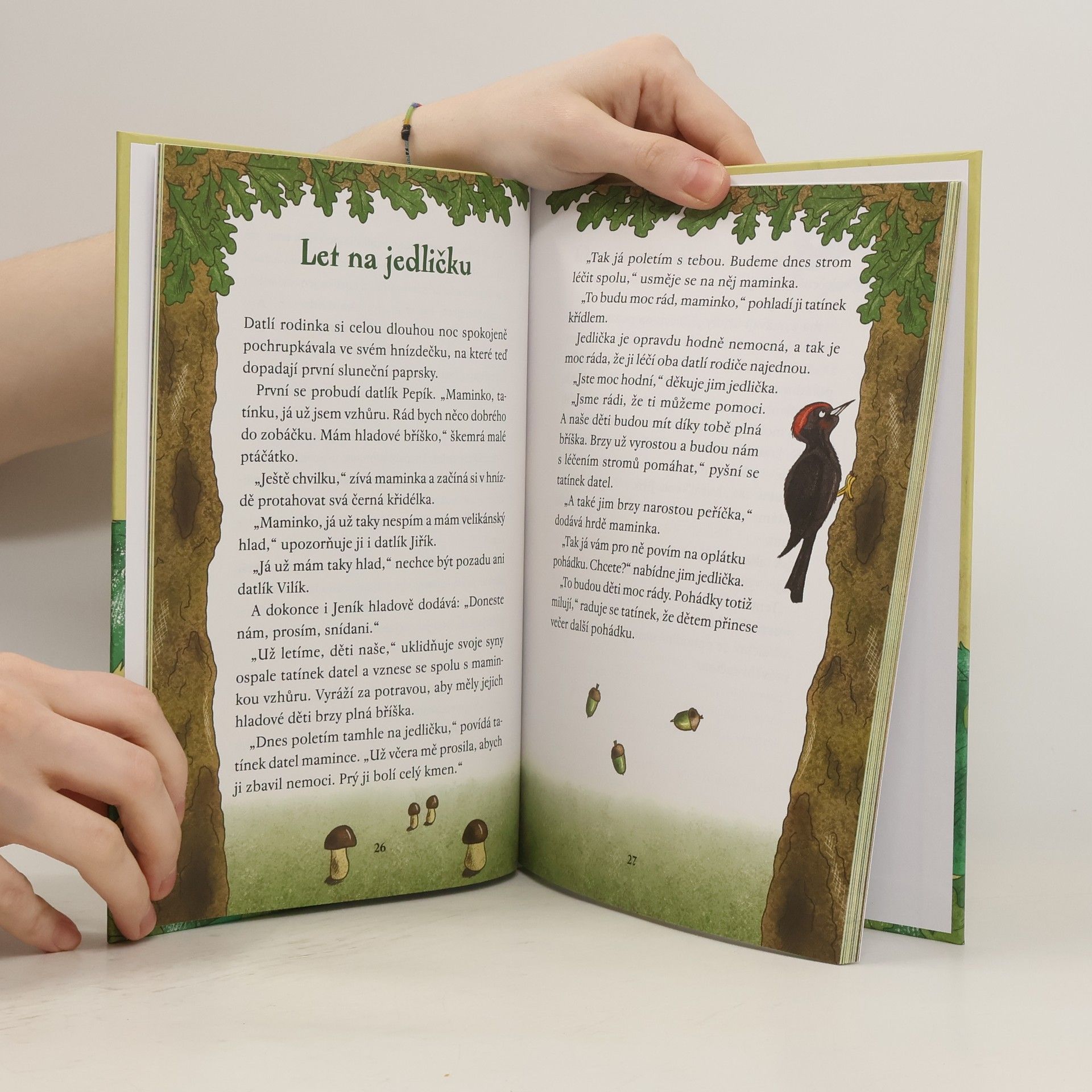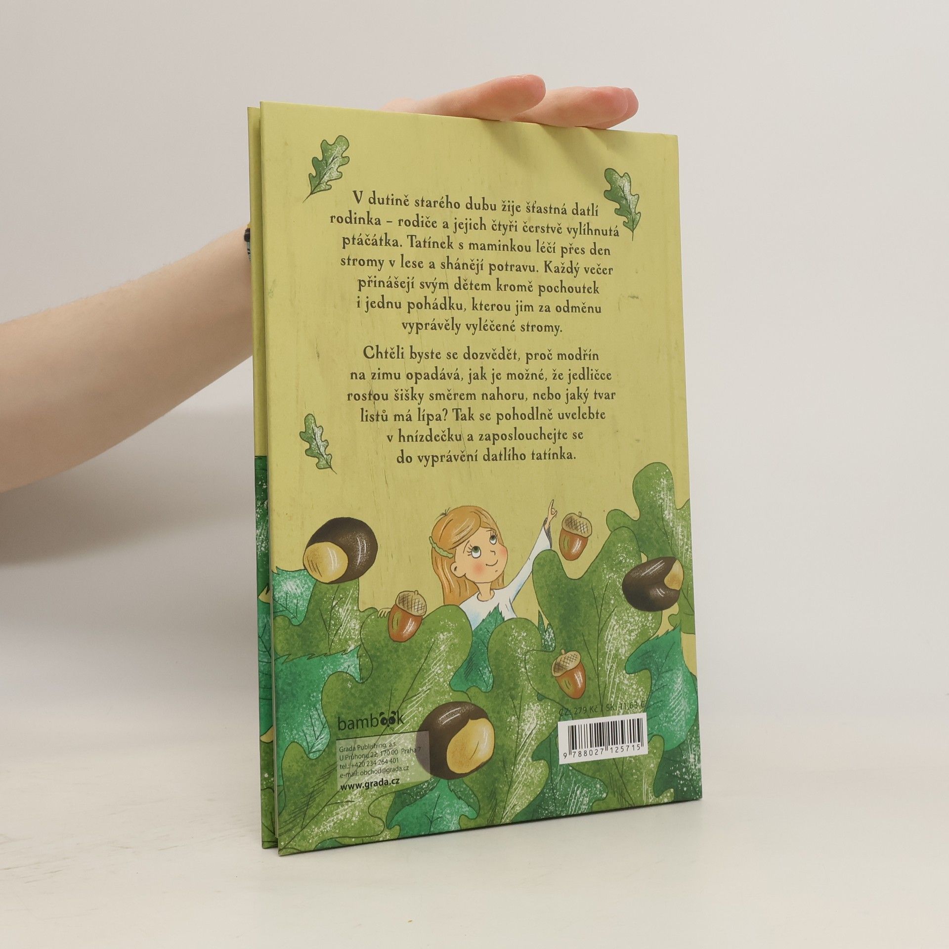 V dutině starého dubu žije šťastná datlí rodinka – rodiče a jejich čtyři čerstvě vylíhnutá ptáčátka. Tatínek s maminkou léčí přes den stromy v lese a shánějí potravu. Každý večer přinášejí svým dětem kromě pochoutek i jednu pohádku, kterou jim za odměnu vyprávěly vyléčené stromy. Chtěli byste se dozvědět, proč modřín na zimu opadává, jak je možné, že jedličce rostou šišky směrem nahoru nebo jaký tvar listů má lípa? Tak se pohodlně uvelebte v hnízdečku a zaposlouchejte se do vyprávění datlího tatínka.