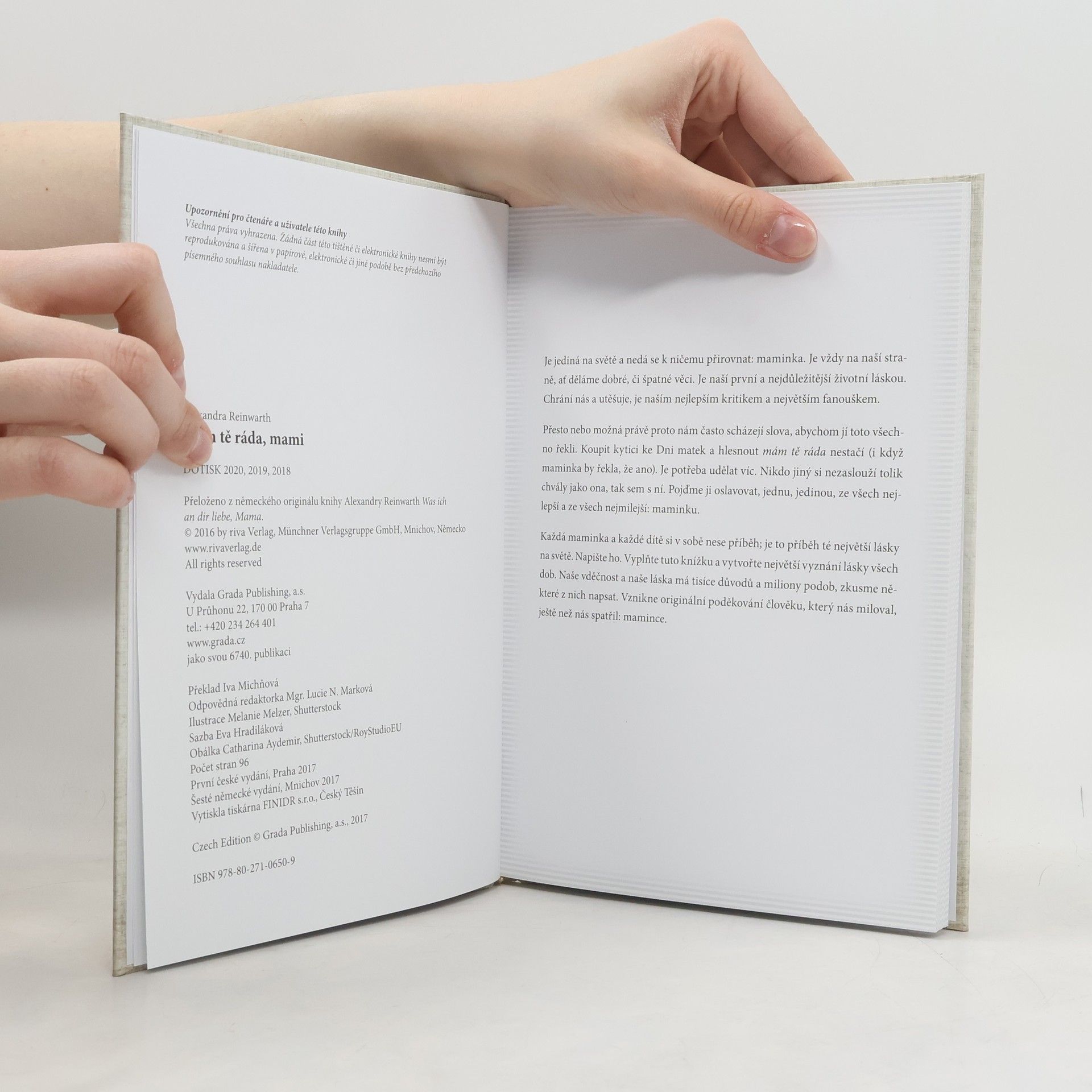 Je jediná na světě a nedá se k ničemu přirovnat: maminka. Je vždy na naší straně, ať děláme dobré, či špatné věci. Je naší první a nejdůležitější životní láskou. Chrání nás a utěšuje, je naším nejlepším kritikem a největším fanouškem. Přesto nebo možná právě proto nám často scházejí slova, abychom jí toto všechno řekli. Koupit kytici ke Dni matek a hlesnout mám tě ráda nestačí (i když maminka by řekla, že ano). Je potřeba udělat víc. Nikdo jiný si nezaslouží tolik chvály jako ona, tak sem s ní. Každá maminka a každé dítě si v sobě nese příběh, je to příběh té největší lásky na světě. Napište ho. Vyplňte tuto knížku a vytvořte největší vyznání lásky všech dob. Vytvořte originální poděkování člověku, který nás miloval, ještě než nás spatřil: mamince.