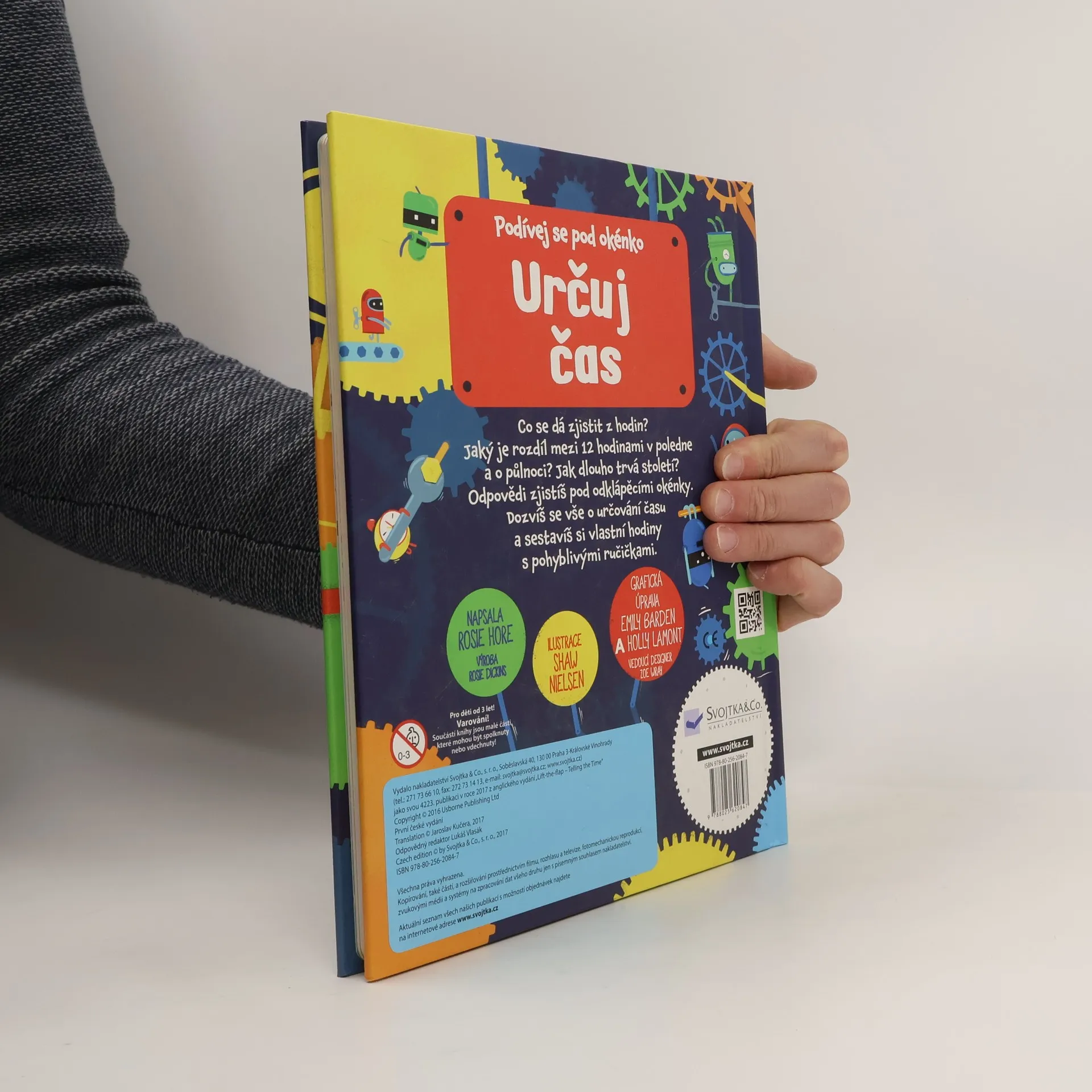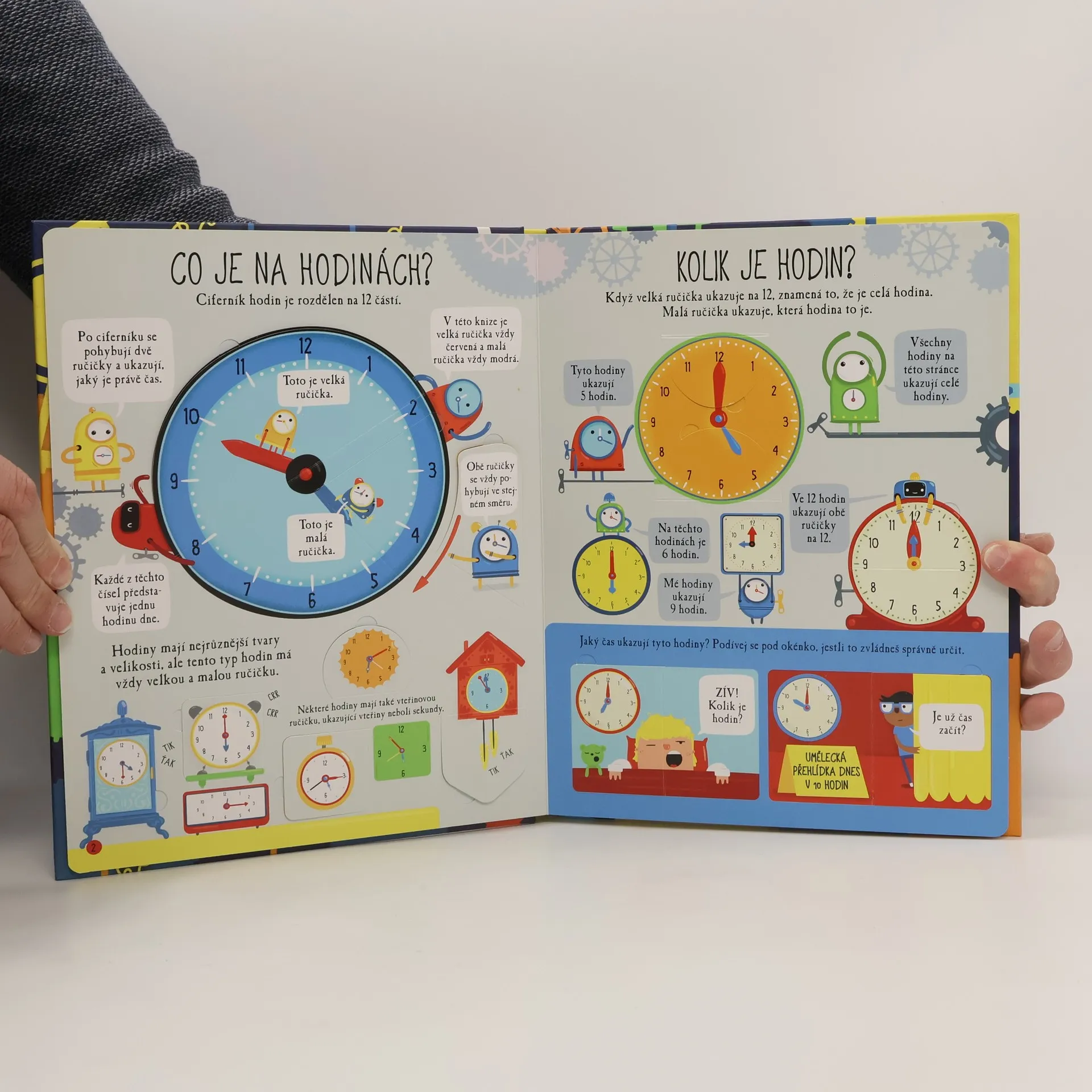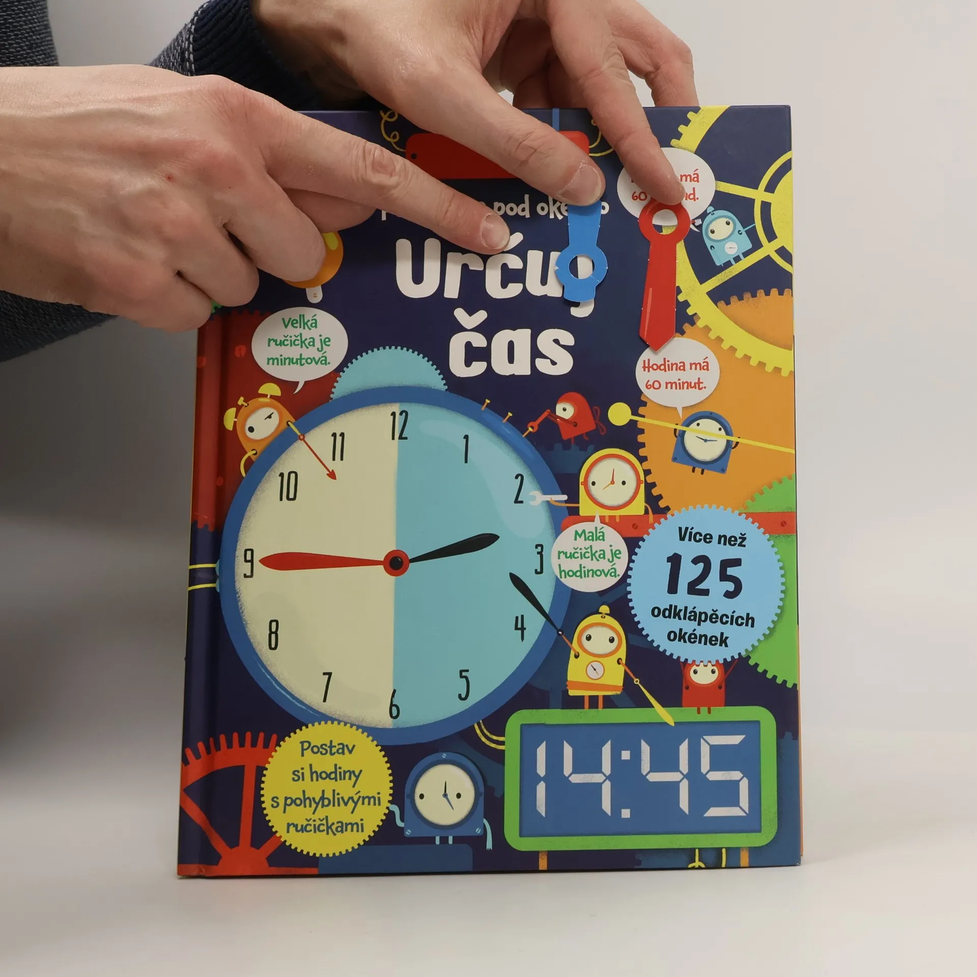 Čas. Nikdo ho nikdy neviděl, lidé si pořád stěžují, že ho mají málo. Čas ovlivňuje naše životy. Co je to vlastně čas? Co všechno se dá zjistit z hodin? Jaký je rozdíl mezi 12 hodinami v poledne a o půlnoci? Jak dlouho trvá století nebo milénium? Odpovědi na všechny své otázky o čase zjistíš pod odklápěcími okénky. Dozvíš se vše o určování času a postavíš si vlastní hodiny s pohyblivými ručičkami. Tak neztrácej čas a procvič se v určování času! České vydání publikace nakladatelství Usborne.