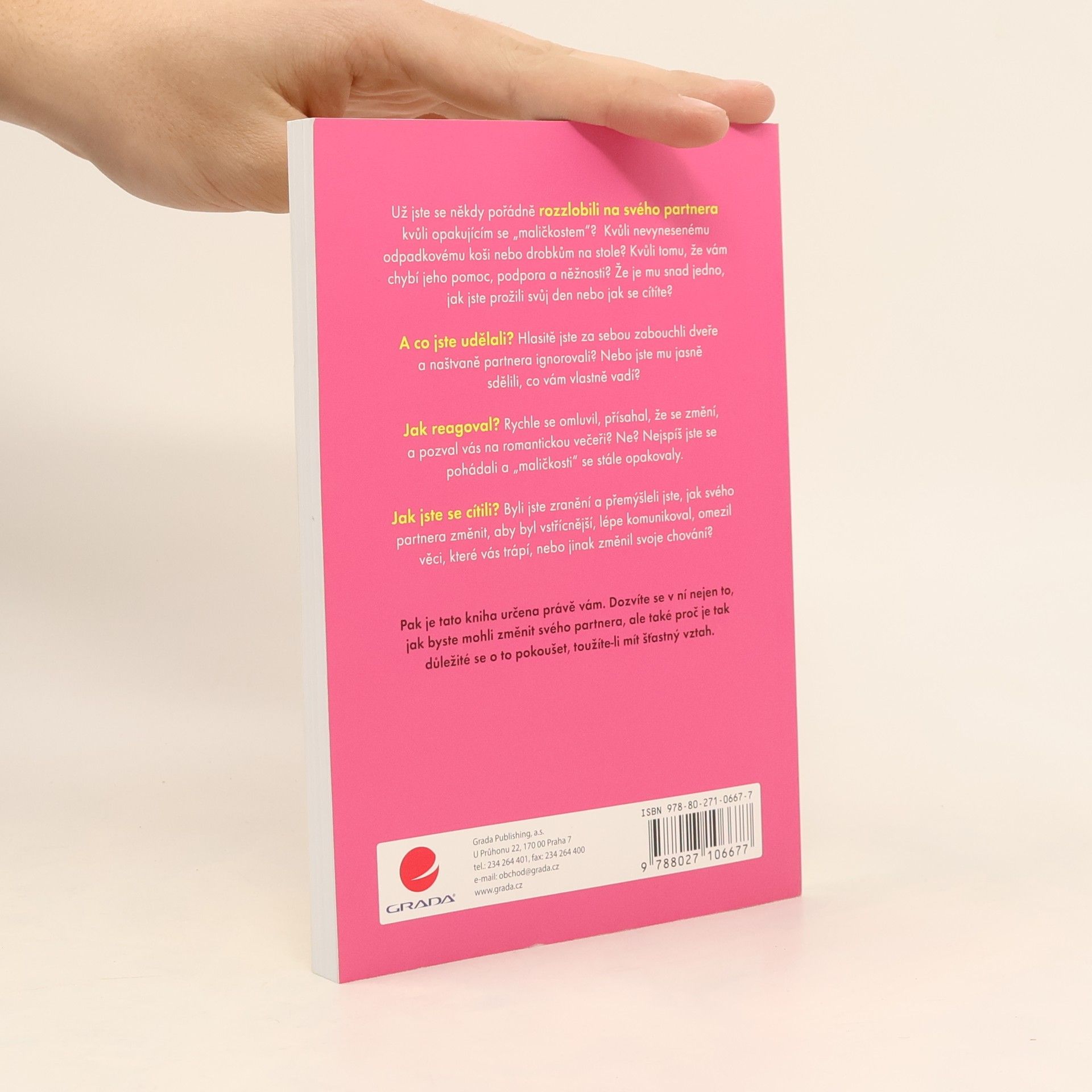 Už jste se někdy pořádně rozzlobili na svého partnera kvůli opakujícím se „maličkostem“? Kvůli nevynesenému odpadkovému koši nebo drobkům na stole? Kvůli tomu, že vám chybí jeho pomoc, podpora a něžnosti? Že je mu snad jedno, jak jste prožili svůj den nebo jak se cítíte? A co jste udělali? Hlasitě jste za sebou zabouchli dveře a naštvaně partnera ignorovali? Nebo jste mu jasně sdělili, co vám vlastně vadí? Jak reagoval? Rychle se omluvil, přísahal, že se změní, a pozval vás na romantickou večeři? Ne? Nejspíš jste se pohádali a „maličkosti“ se stále opakovaly. Jak jste se cítili? Byli jste zranění a přemýšleli jste, jak svého partnera změnit, aby byl vstřícnější, lépe komunikoval, omezil věci, které vás trápí, nebo jinak změnil svoje chování? Pak je tato kniha určena právě vám. Dozvíte se v ní nejen to, jak byste mohli změnit svého partnera, ale také proč je tak důležité se o to pokoušet, toužíte-li mít šťastný vztah.