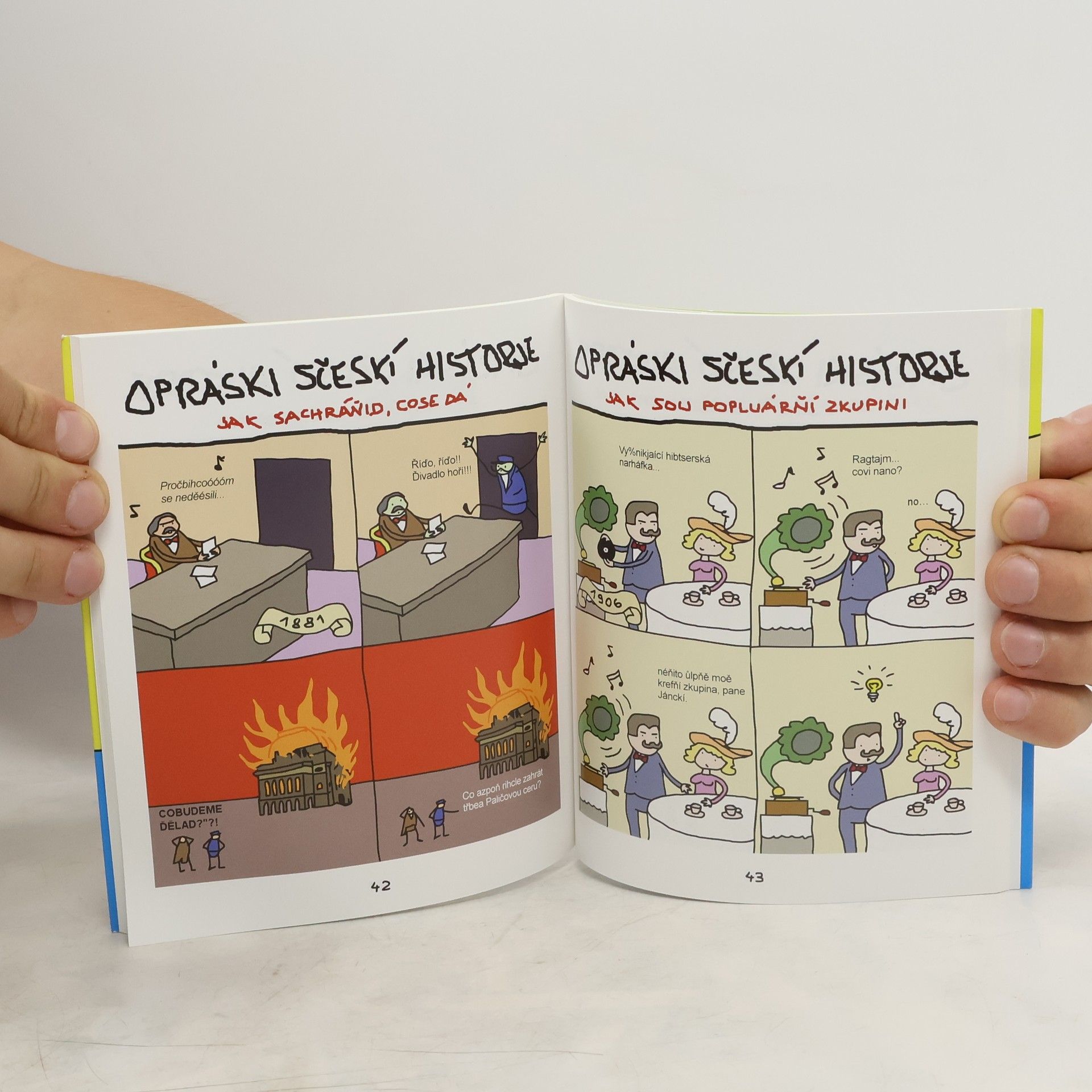 Opráski sčeskí historje jsou krátké komiksy (stripy) postavené na reálném historickém základu, který někdy doplňuje vykonstruovaná pointa. Správná gramatika v nich jde stranou, velký prostor naopak dostává specifický a často nekorektní humor. Z těchto důvodů mají jak mnoho fanoušků, tak i odpůrců. Po prvním a druhém díle vám přinášíme díl třetí s novými a ještě lepšími opráski. Opět je doplňují medajlonky velkých postav našich dějin. Dovíte se například, že velikán vědy a hrdina školních kabinetů Jan Amos Komenský, neměl rád děti, ale také to, že knihy Bohumila Hrabala jsou hned po kocovině tím nejlepším, co české pivo dalo světu.